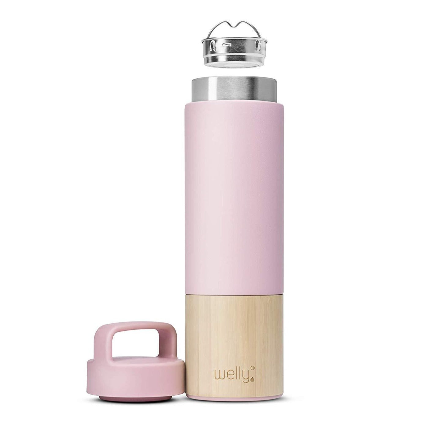 Minimal design to elevate the everyday. This double wall, insulated bottle comes with a punch of color and convenient loop cap to comfortably carry or clip to your bag, no matter where the day takes you. Features a removable infuser perfect for tea or your favorite fruits.
