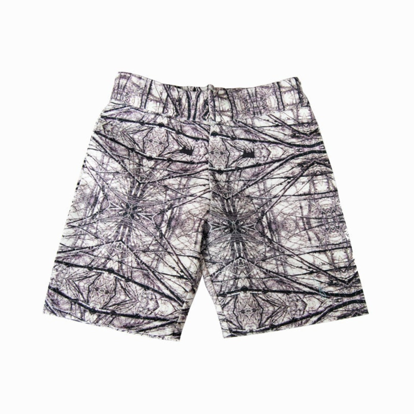 Printed tailored short with fly and snap front, side pockets and back welt pocket. Contrast pocket bags and welt pocket. We recommend sizing up.