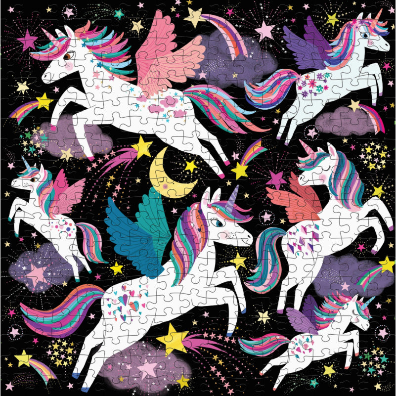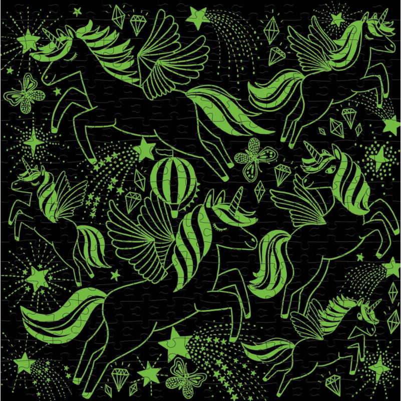 Put it together, frame it, and use it as a super cool piece of decor! Turn out the lights to see magic come alive! Watch the magic of these unicorns light up in the glowing image!