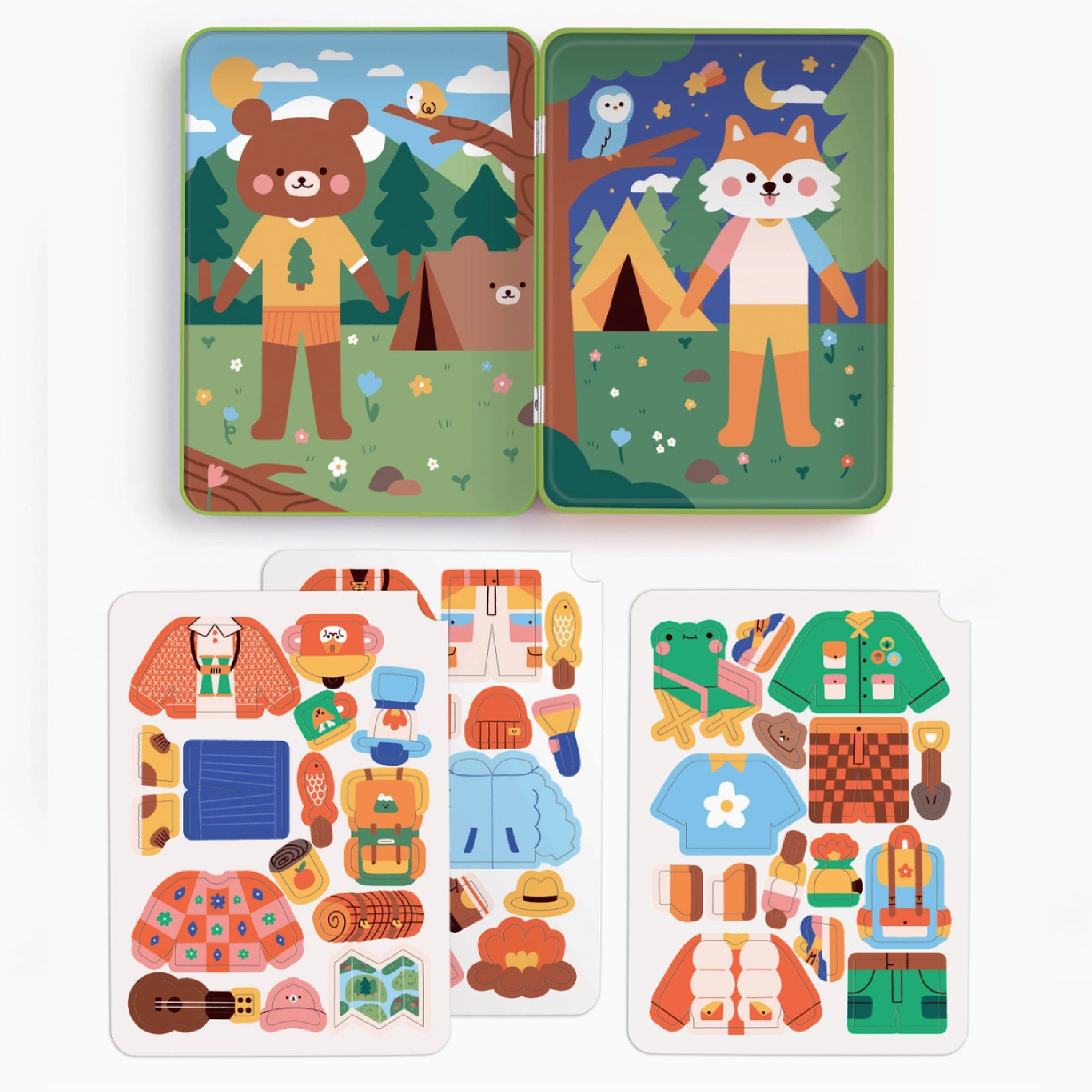 This playful Magnetic Figures comes with 4 illustrated background scenes and 3 sheets of magnetic parts for dressing up these adorable animal friends. The sturdy tin package offers hours of imaginative play with easy cleanup and storage of pieces. These Magnetic Tins are the perfect children's travel toy and quiet time activity.
