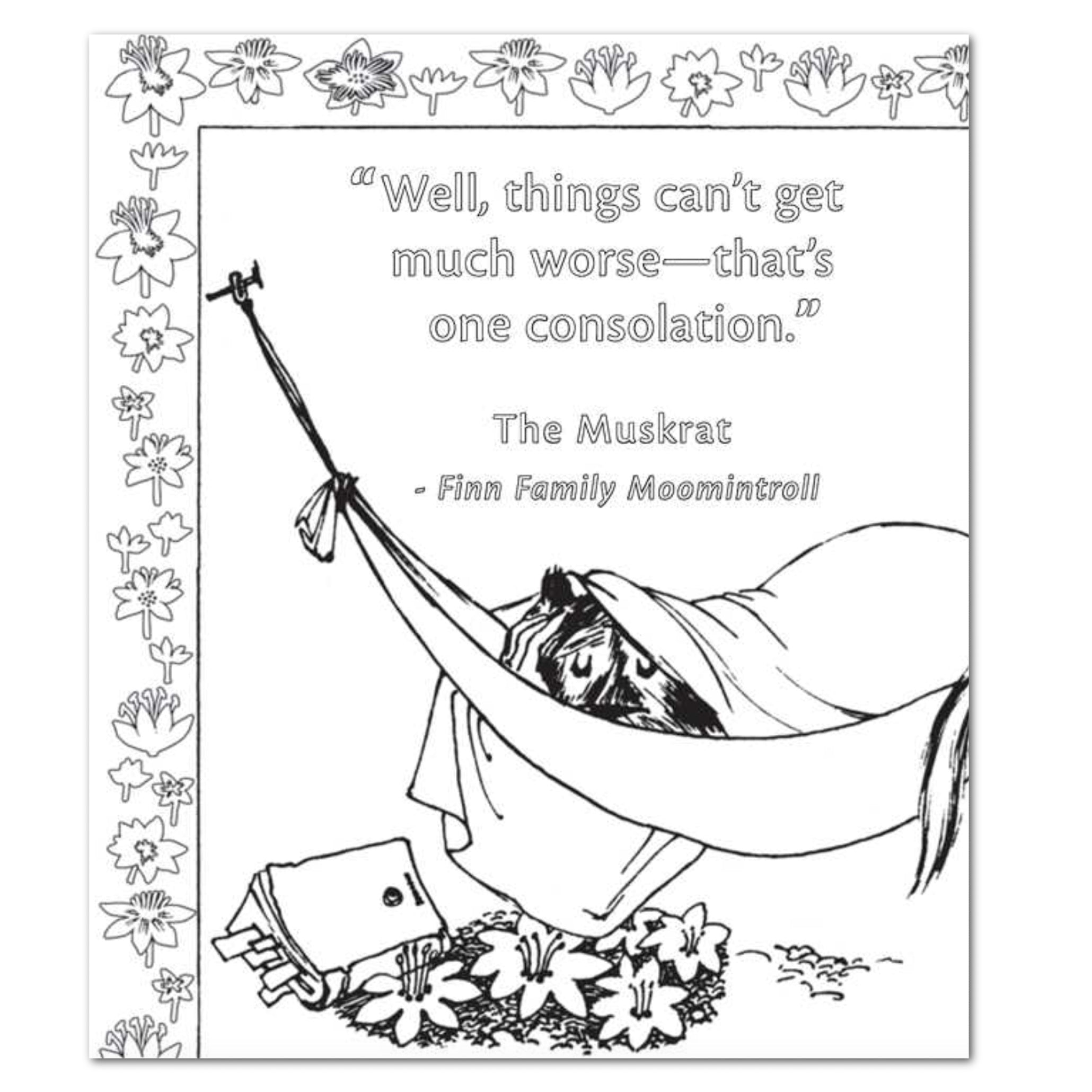 Join the Moomin world and color in your favorite characters, from Moomintroll and Moominpappa to The Groke and Mr. Fillyjonk, in this delightful coloring book based on the famous children's book series. This coloring book contains Tove Jansson's original detailed illustrations of your favorite Moomin characters alongside some of the books' most iconic quotes. Immerse yourself in the Moomin world as you color in classic characters and landscapes that will be sure to captivate children and adults alike!