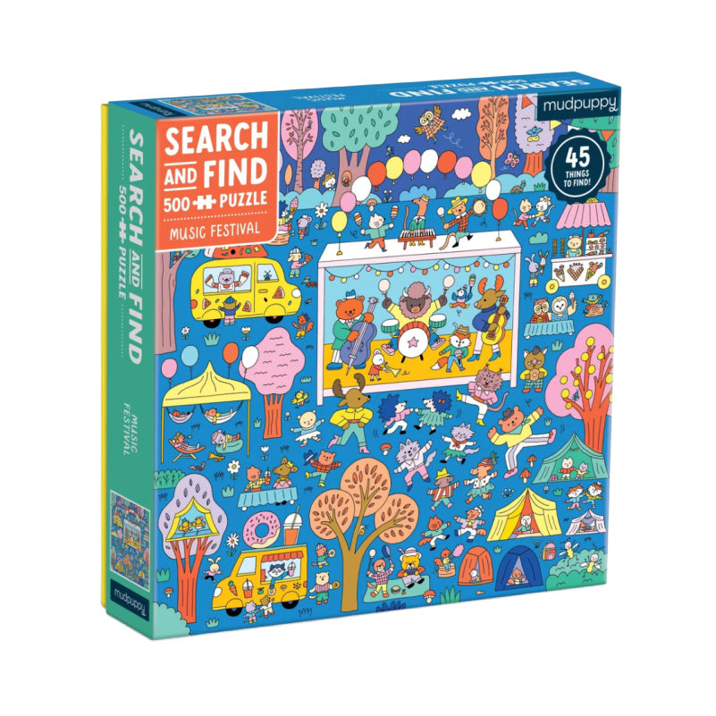 A super fun search and find puzzle! First, piece together the 500-piece puzzle highlighting a fun and exciting music festival. After piecing the puzzle together, test your observation skills to find the 40+ items within the puzzle image. Can you find them all?