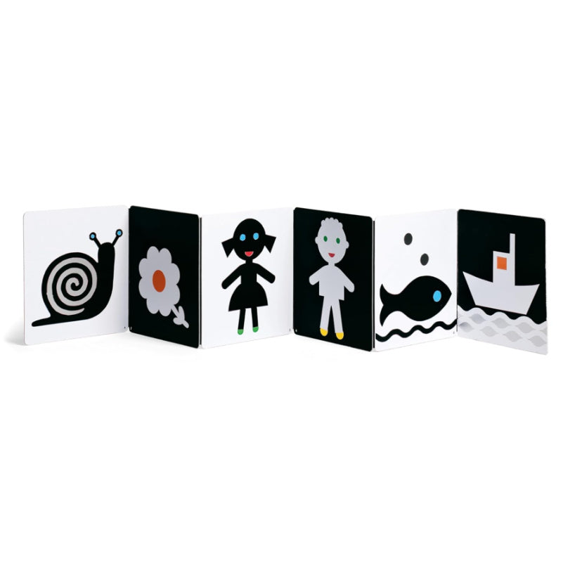 A fold out, textured, high-contrast and tactile accordion board book, perfect for babies and tummy time. A baby’s world is a blur when they’re first born and they start to see black and white before they see color. Books featuring high-contrast images help develop their eyesight and focus, and keep their attention.