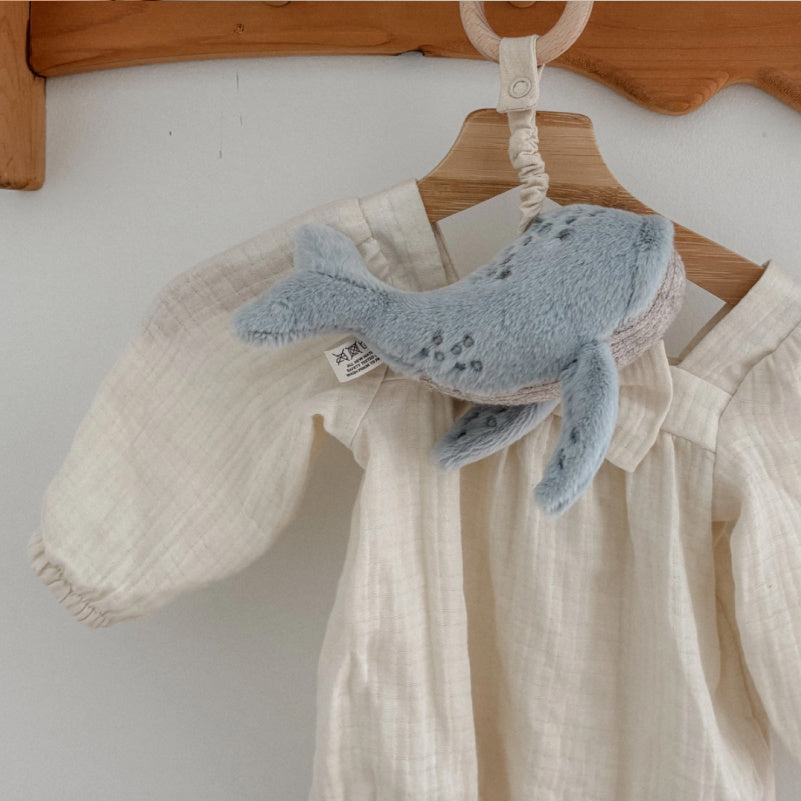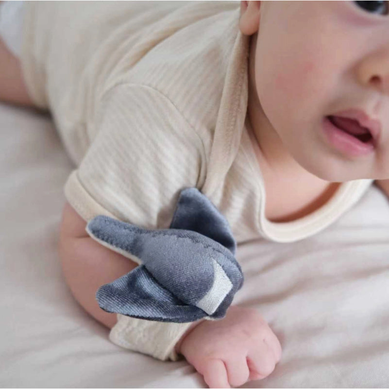 Featuring a soft wrist rattle shaped like a cheerful manta ray and a matching mini whale, this set invites babies to discover sound, texture, and movement from their earliest days. The rattle companion adds extra play for the stroller rides, creating moments of joy and comfort wherever they go. This set is designed to soothe, entertain, and grow alongside your little dreamer — because every day with them is an ocean of discovery.