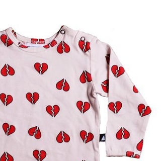 A rad and ultra soft pair onesie features a broken heart... because your little one is bound to break hearts. Pair with our matching leggings!