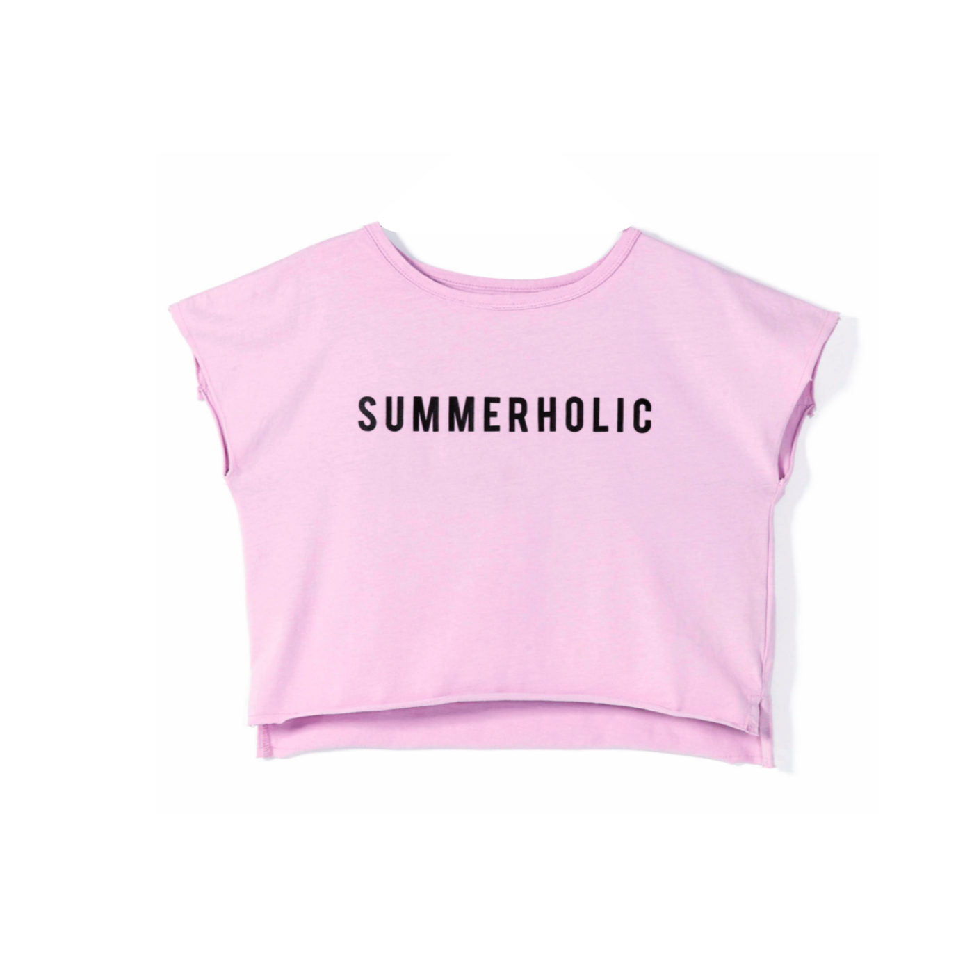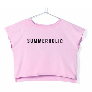 A rad and unique cap tee for your modern babe. Features a front print and cap sleeves with an unfinished edge in a dusty purple.