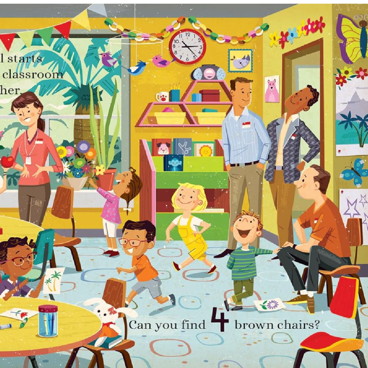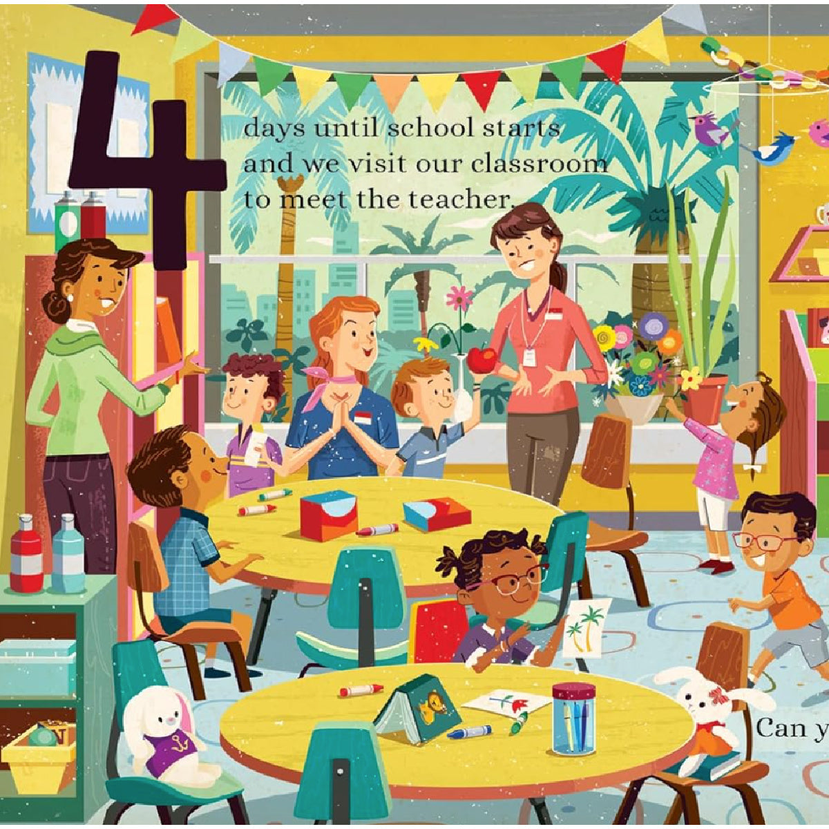 Toddlers learn to count down from 10 to 1 as they mark the days until school begins, and they can practice counting by finding objects hidden throughout these fun back-to-school scenes in this classically retro mid-century art style. From finding green library books and blue water bottles to exploring the playground and visiting the classroom, there’s fun to be had on every page. Discover new details in each illustration with every successive reading of the book.