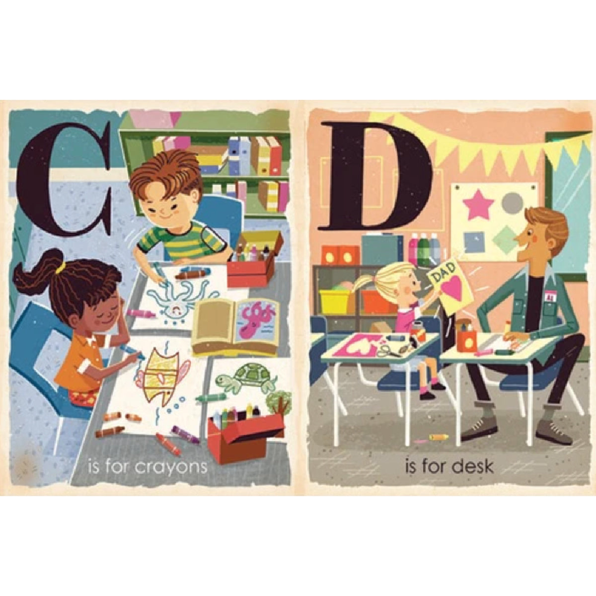 Lots of kids look forward to going back to school each fall. This collection of 26 illustrations featuring words from A to Z will introduce toddlers to what all the fuss is about in a unique and engaging way. Included are artist Greg Paprocki’s colorful and wonderfully detailed illustrations that bring to life concepts from the school bus to the classroom, including activities, school subjects, friends, classmates, and teachers.