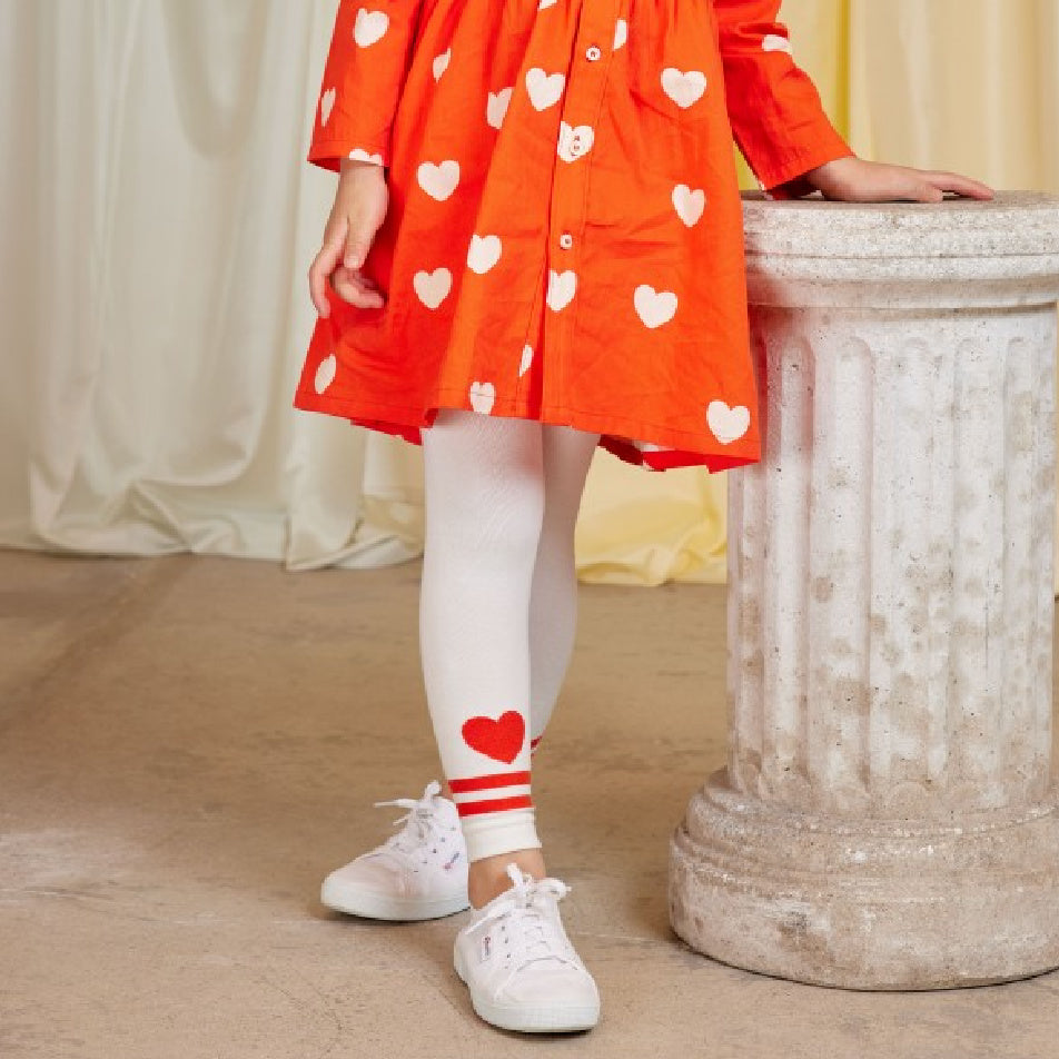 A super super sweet and fun, footless legging set in white and red & white and blue with a stripe and heart design!
