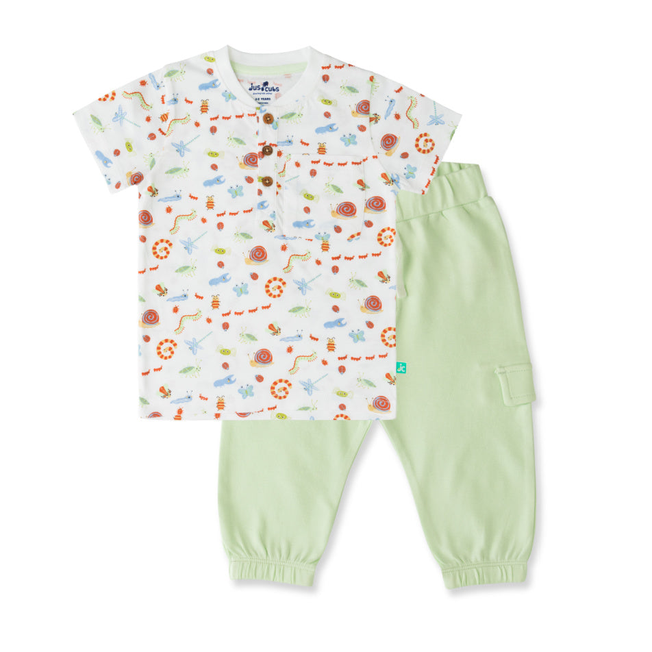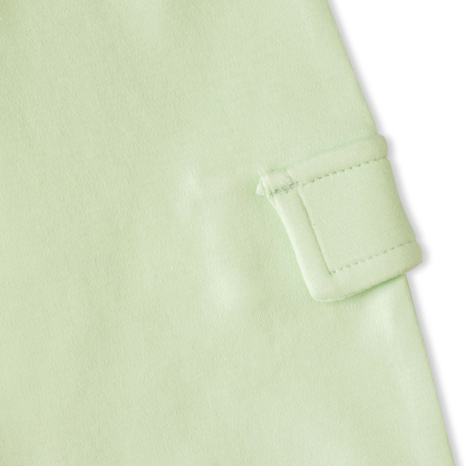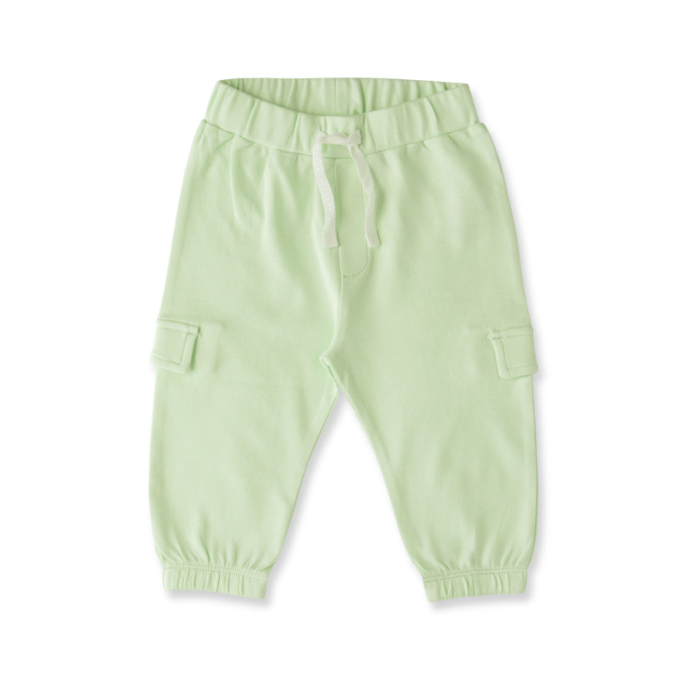 An adorable organic cotton pant featuring a faux cargo pocket and elastic waistband.