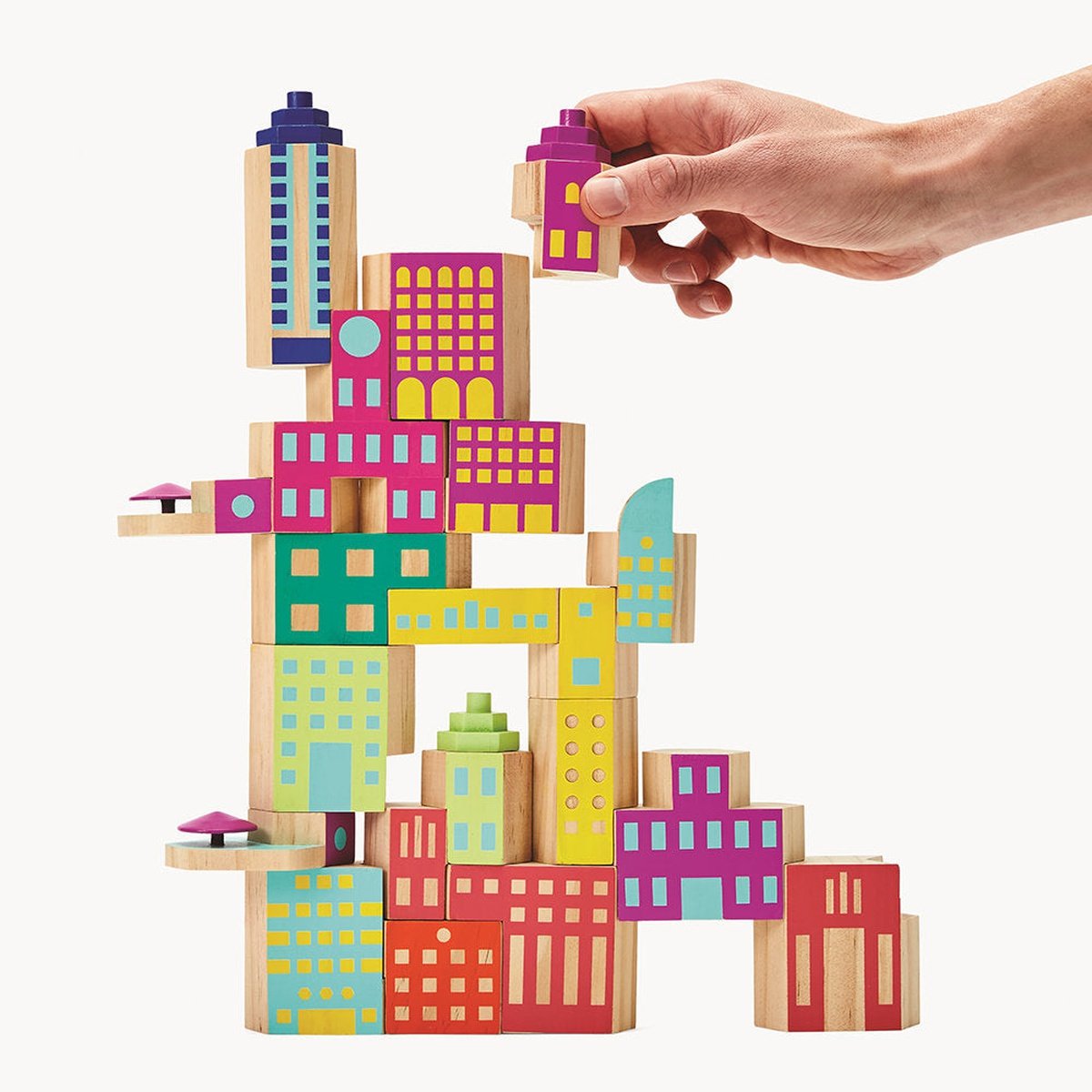 The Blockitecture Deco Mega Set is a 20-piece set inspired by colorful post-modern architecture found coast to coast all over the world. Stack and balance the pieces to create the Deco Skyscraper or combine with other sets to create a Blockitecture metropolis.