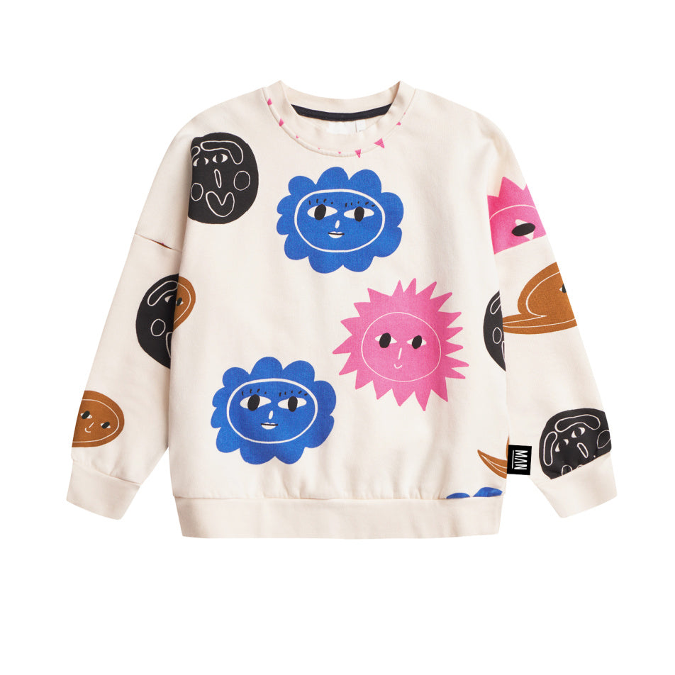 This unique print gives us all the mid century modern vibes! A relaxed fit and beautiful crew neck sweatshirt with an all over modern planet print. Designed to express creativity, uniqueness, and the boldness of artists of all ages.