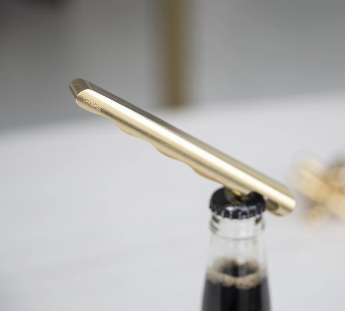 Milled in Wisconsin from a single piece of solid brass, this churchkey-style bottle opener breathes new life into an age-old tool. A welcome addition to your bar cart or stash drawer, it features a wave-like profile that opens any bottle in its path and looks good doing it. Super satisfying to use...