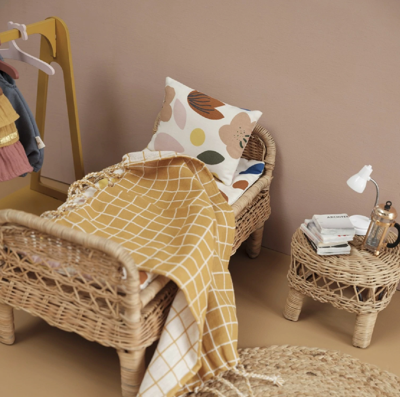 An adorable Rattan Bed with a retro look. Doubles as a beautiful day bed or lounger and sold without bedding so you can let your design style show off with your own materials!