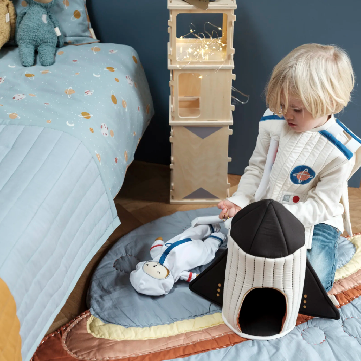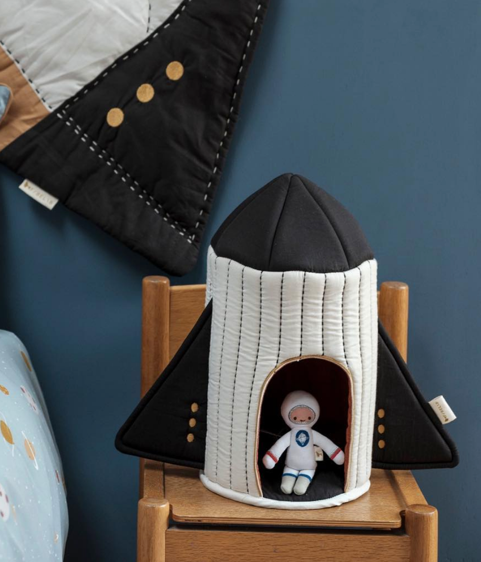 The Fabric Spaceship has the cutest little details in beautiful colors. The land of imagination, lovely creatures, and endless possibilities are slowly disappearing from your sight. Everything is so small that it disappears like small invisible grains of sand. Behind the candy floss-like clouds, a whole new world emerges. It’s the imaginative dazzling space.
