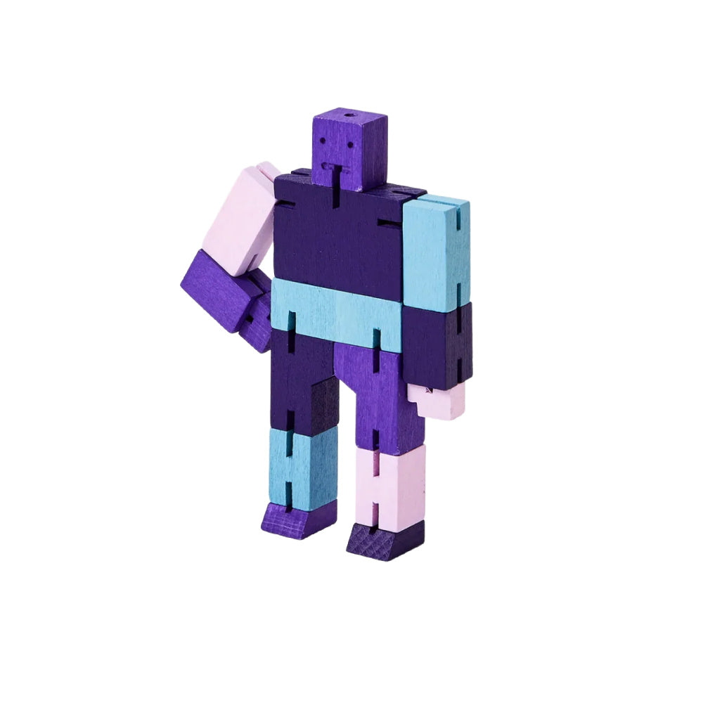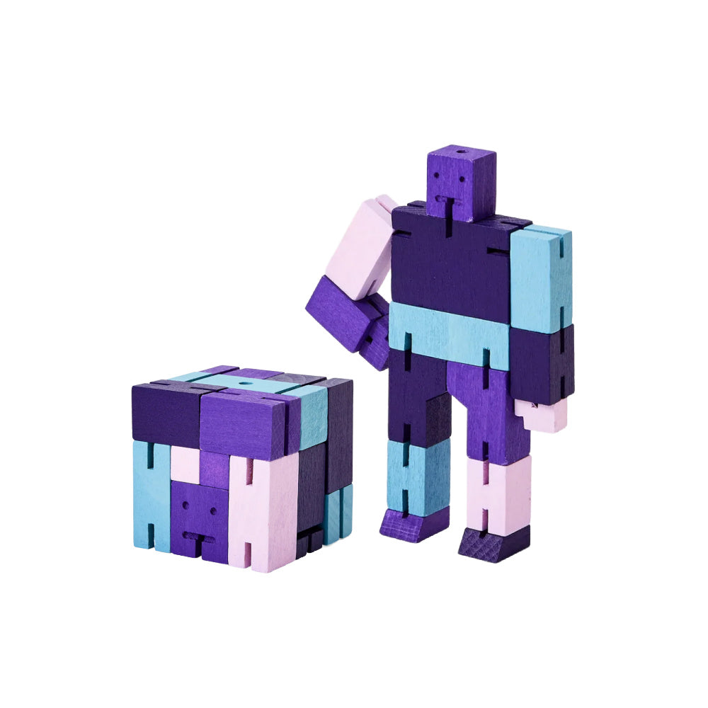 Cubebots powerful hardwood frame can hold dozens of poses and his elastic-band muscles and durable wood limbs make him impervious to breakage. When it's time for bed, he folds into a perfect cube. An enduring classic that is sure to withstand generations of ninja battles.