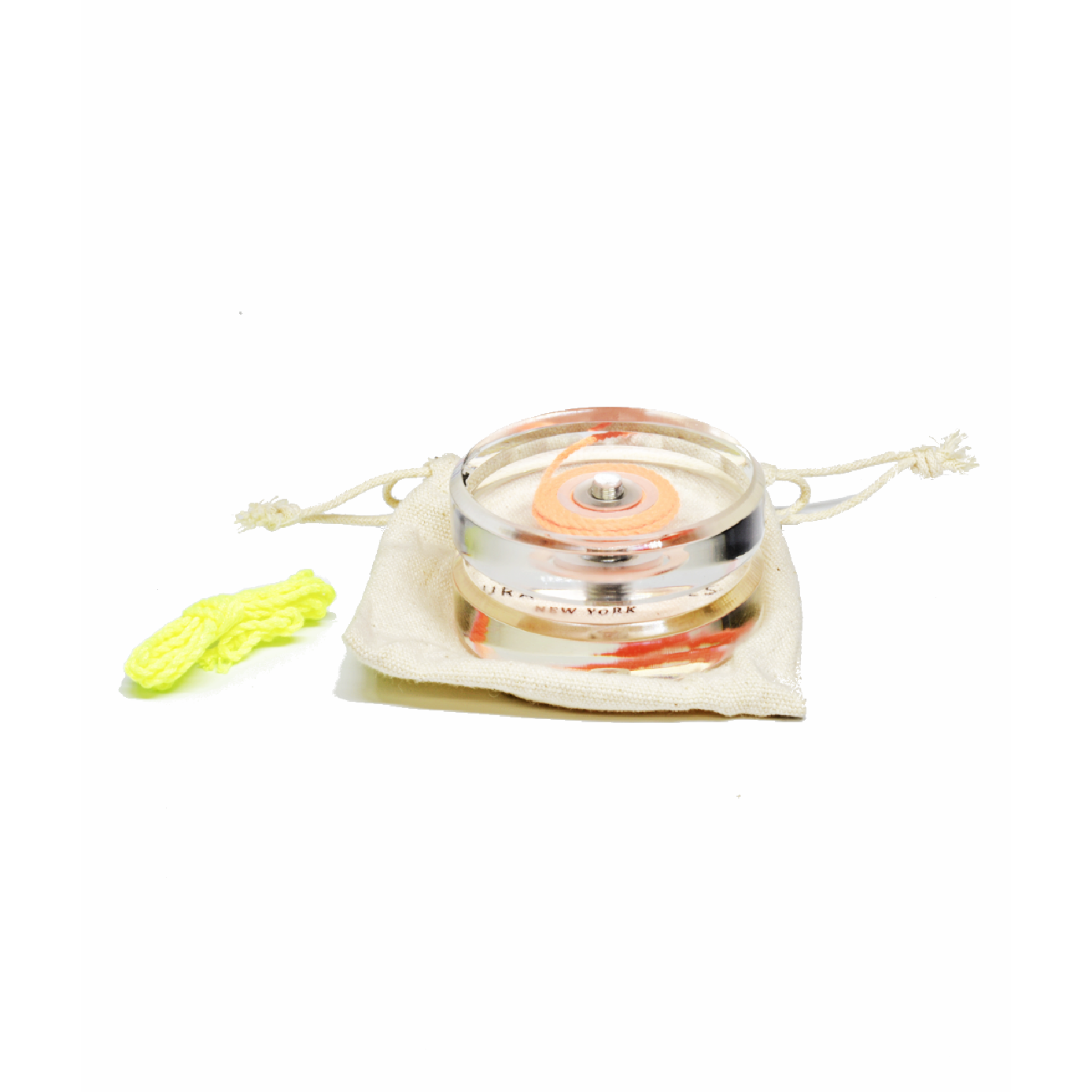 A modern upgrade to a classic. A beautiful yo-yo made from acrylic with smooth, flat edges. Packaged in a cotton bag featuring neon string and an extra... because you're a little extra.