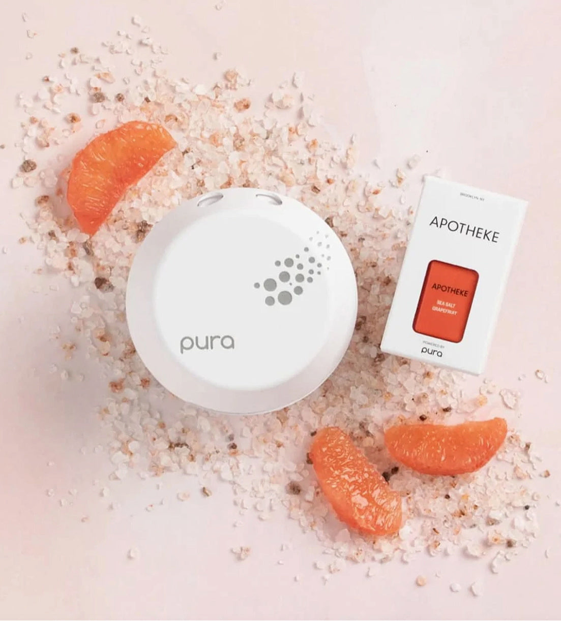 Sea Salt Grapefruit is the smell of summertime. Notes of juicy ripe grapefruit and black pepper intertwined with sea salt blend together for a bright and energizing scent. Balanced with dew drop accords and tarragon, Sea Salt Grapefruit will instantly transport you from your couch to your favorite summer spot by the sea. Pura fragrances are thoughtfully designed to never include harsh chemicals. We avoid ingredients known to cause potential harm to health or the environment.
