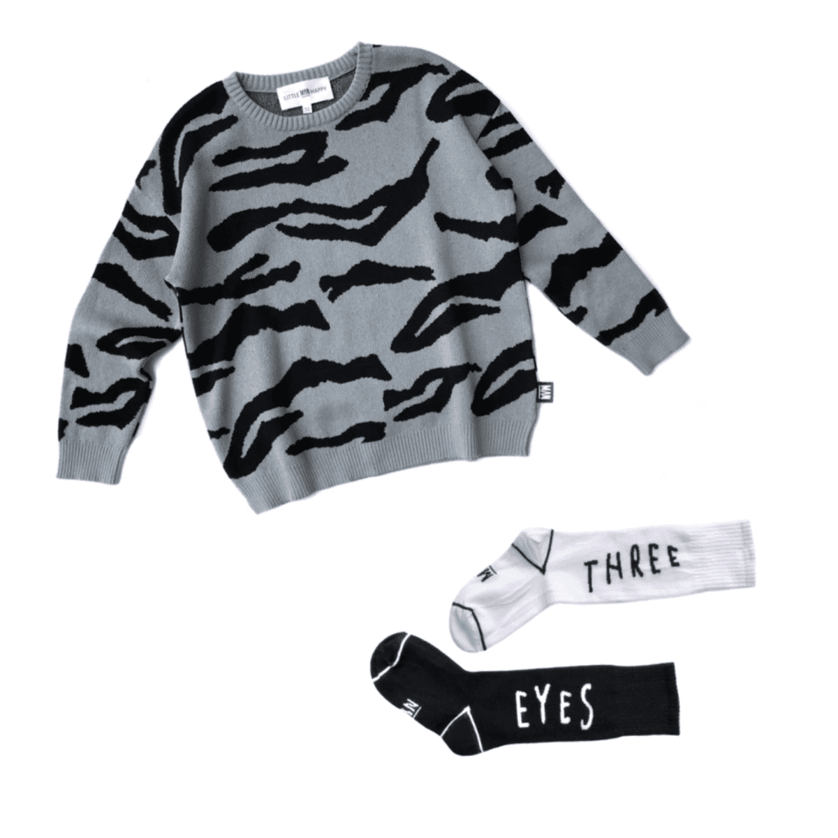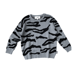 A beautiful knit sweater features an all over tiger print design. Created for all animal lovers. For all land animal, creature loving folk.