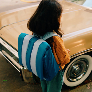 A really unique and chic quilted backpack made of recycled polyester. Waterproof and washable, designed with straps reinforced with nylon bands resistant up to 130 lbs (60 kg). Features an internal divider creating two roomy spaces for all their needs.