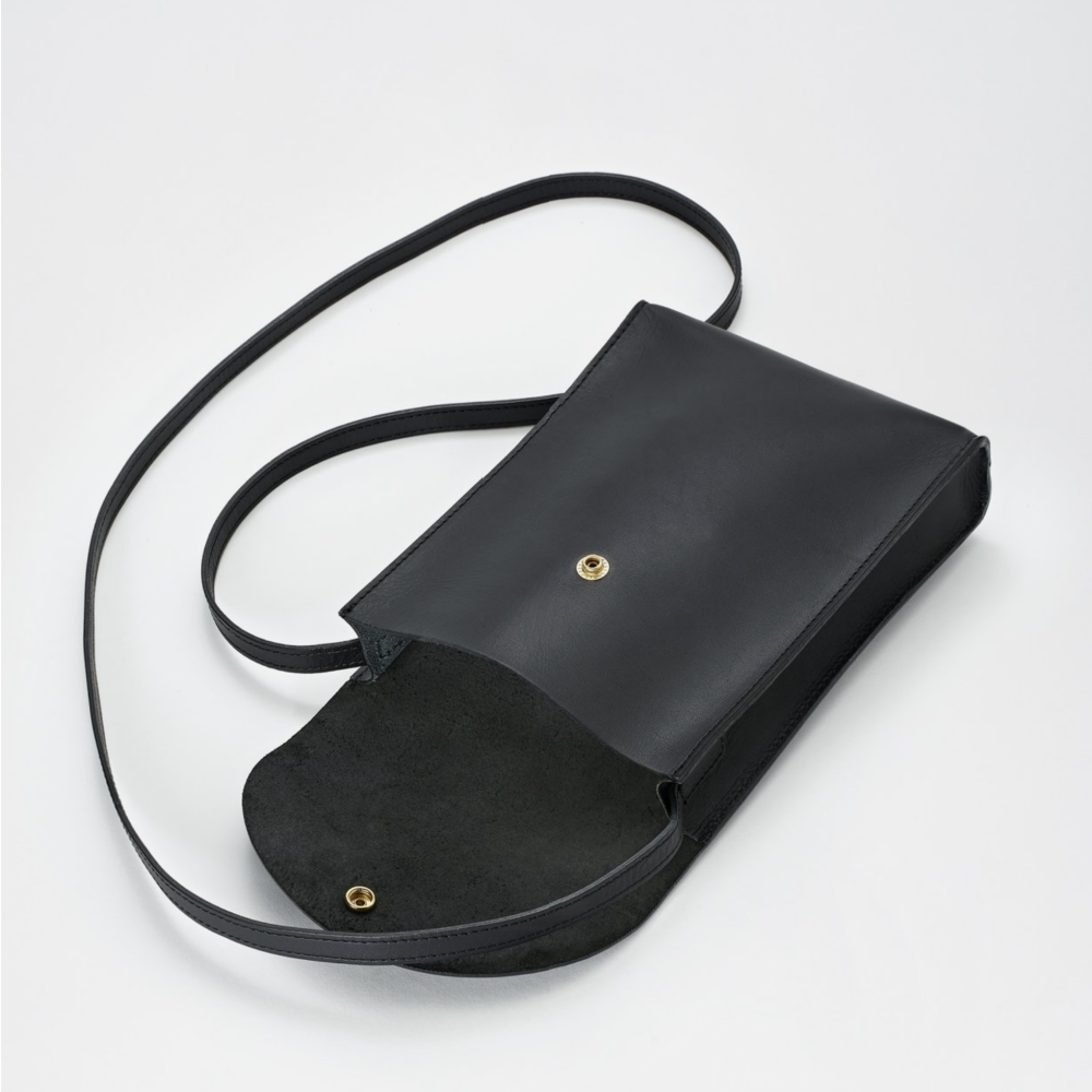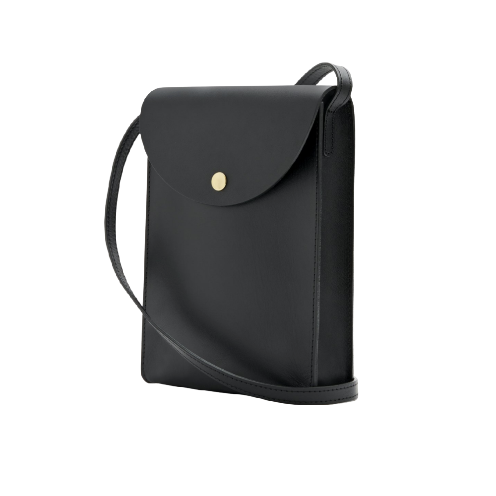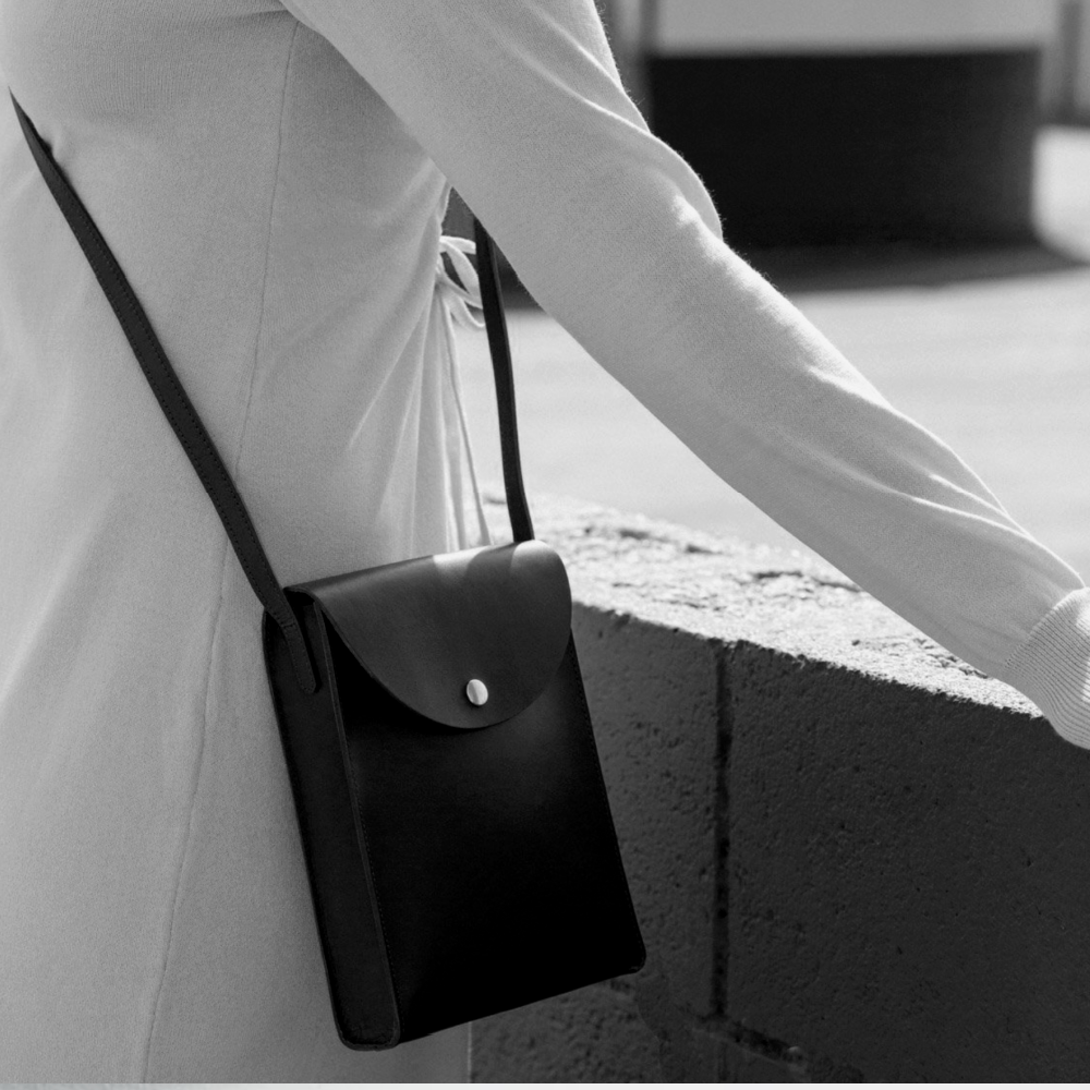 Beautifully crafted from durable, vegetable-tanned leather, the bandit has a short strap to keep it close to your body and a simple, slim profile with enough room for a smartphone, small wallet, and keys, plus room to spare for all your master plans.