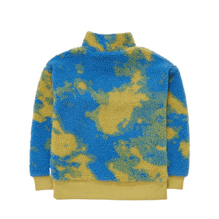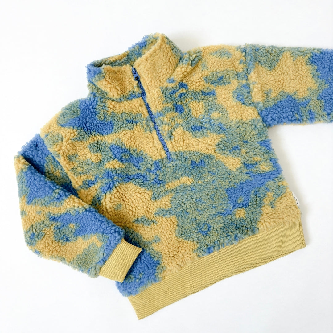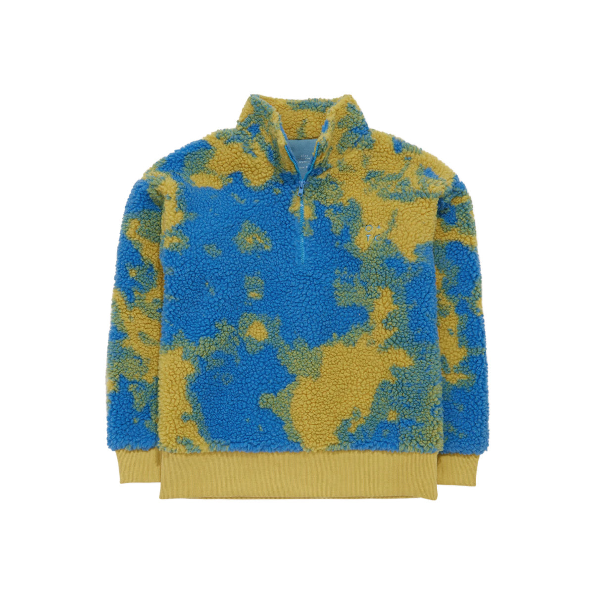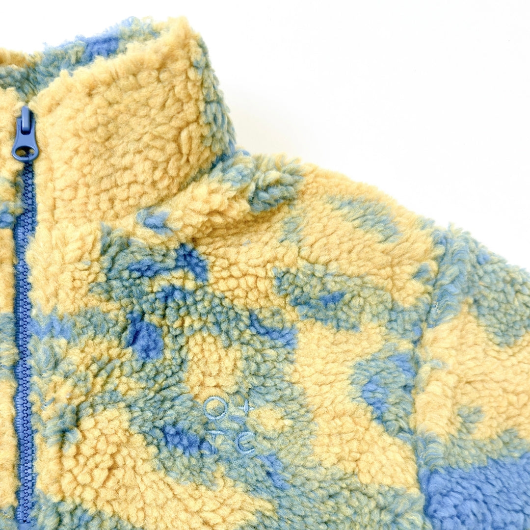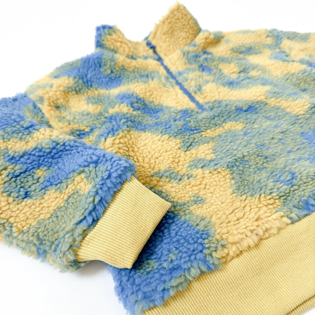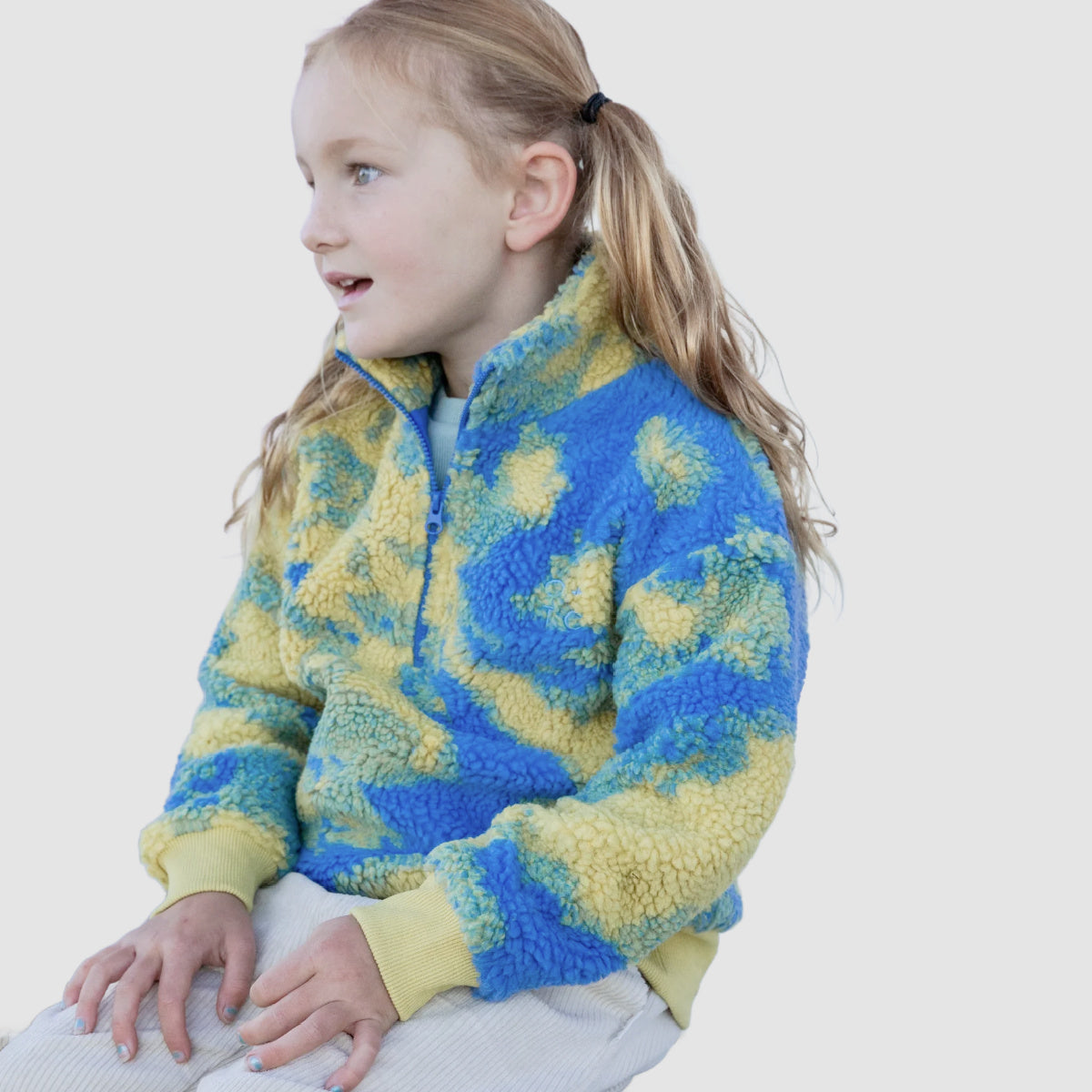 Nothing says warm and cosy like fluffy! Fluffy on the outside, smooth but warm on the inside. 90's inspired design with collar and blue half zip features. A splash of dazzling blue and lime green fleece, lined with a soft jersey. True to size. Size up for a looser fit.