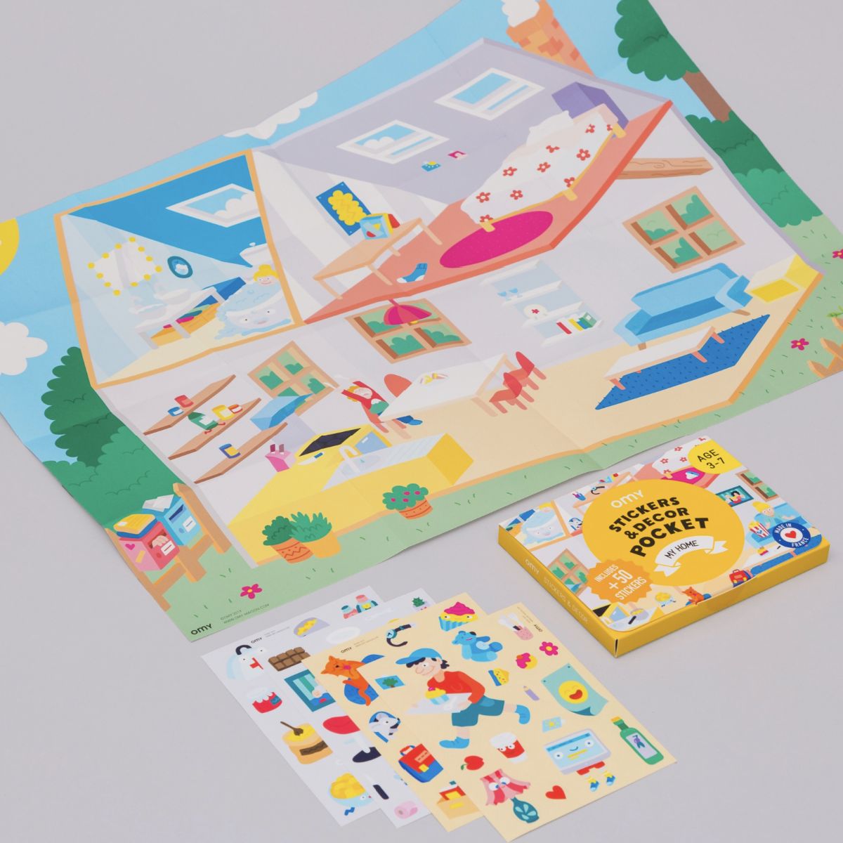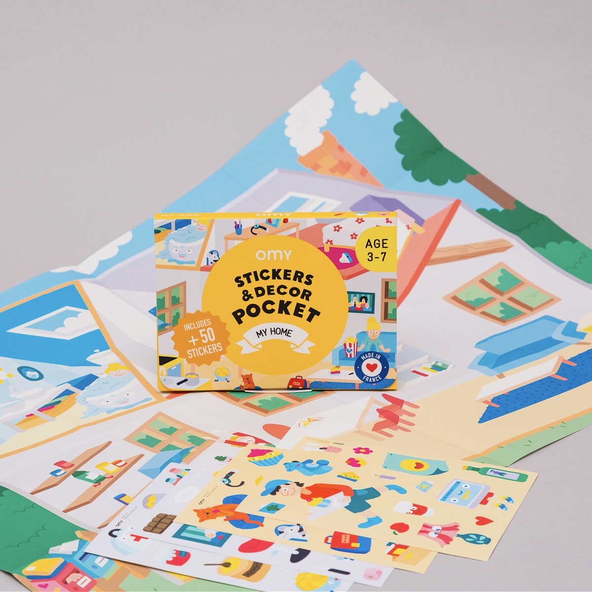 Stick and create your own decorative poster, the pocket size fits in everyone's bags! A fun series of four small pockets with a large decoration to animate with more than 50 small stickers...great activities for kids on the go!