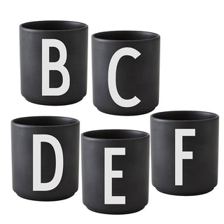 An iconic design from Denmark based on 1937 Arne Jacobsen Typography. Designed for the interior signage for the Aarhus City Hall, this angular, vertical and precise font was radically new in the pre-war years and still expresses the essence of Nordic modernism. A-Z letters adorn fine bone china cups for drinking or decorating your favorite space.