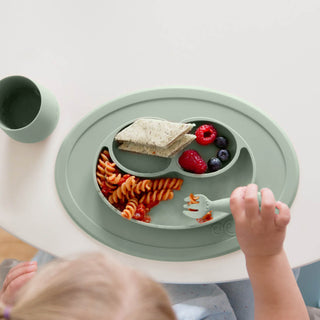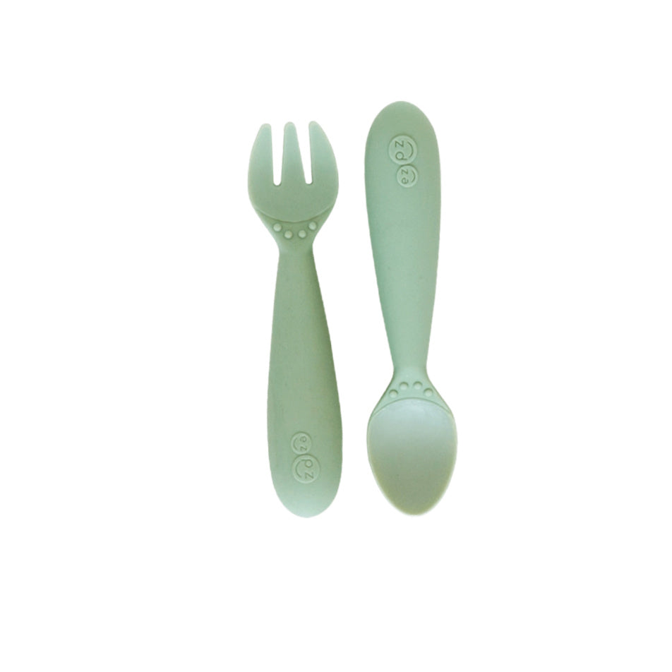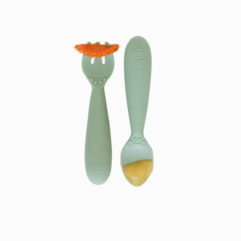 Learning to self-feed is an important developmental milestone, and the ezpz Mini Utensils are designed to help toddlers learn how to eat with a spoon (scooping) and fork (piercing).  Strong design for easy scooping + piercing, sensory bumps and raised rim provide sensory awareness, non-slip grip and short, chunky, round handle makes grasping more successful!