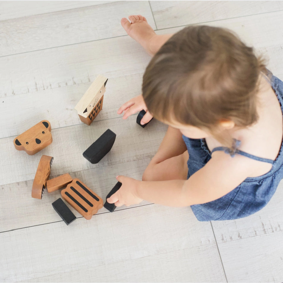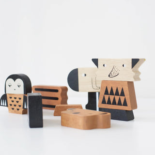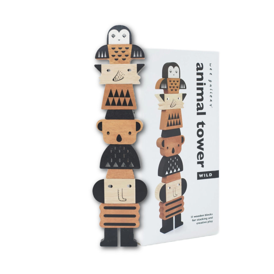 Build and create as you please with these wild wooden character blocks. The 11 solid wood pieces can be mixed and combined in a variety of ways—a real treat for the imagination! Stack them all up into one tall tower for the ultimate balance problem solving challenge! This adorable and playful Animal Tower is a creative building toy that is sure to inspire any play time explorer and get them started with STEM/STEAM learning skills.