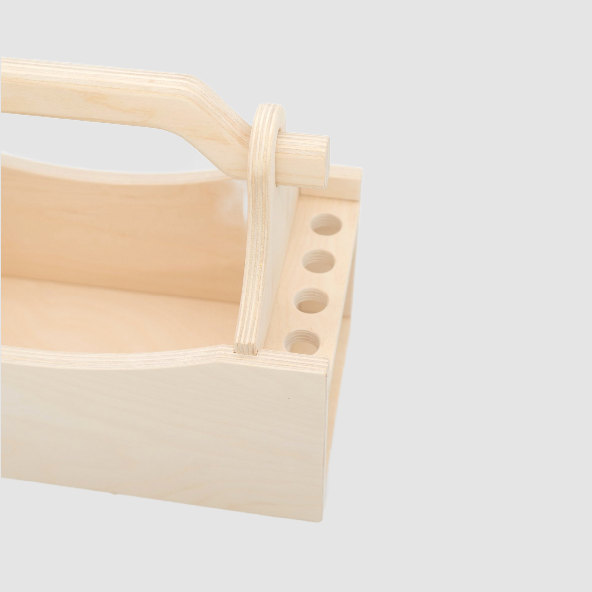 Crafted for young enthusiasts, this handmade, wooden tool organizer combines functionality and style, providing a compact solution for their growing interest in all types of home projects from tightening the screws on a bedroom door handle to exploring the art of woodworking. From organizing tools for easy access to transporting them from task to task. Encourage creativity and independence with our tool tote suitable for any age. The perfect companion for budding craftsmen and craftswomen who also have the appreciation for style. Explore the joy of hands-on learning in a tool tote designed just for them and built to perform for the many years of projects ahead.