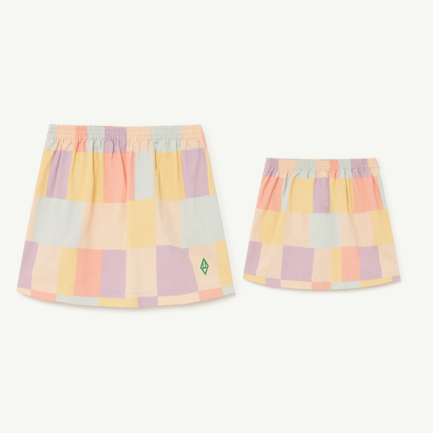 A gorgeous and chic skirt featuring an all over pastel cube print with an elastic waistband..