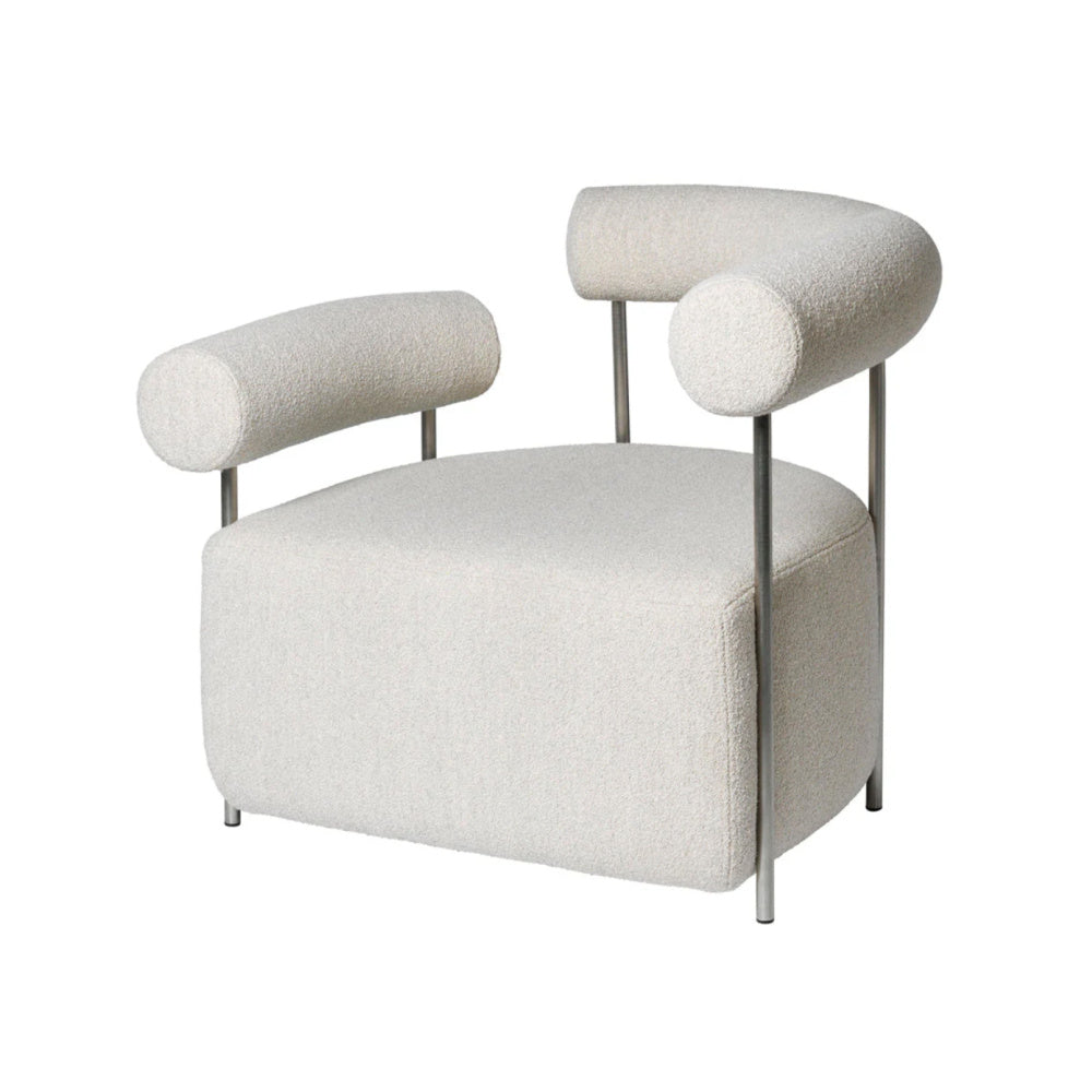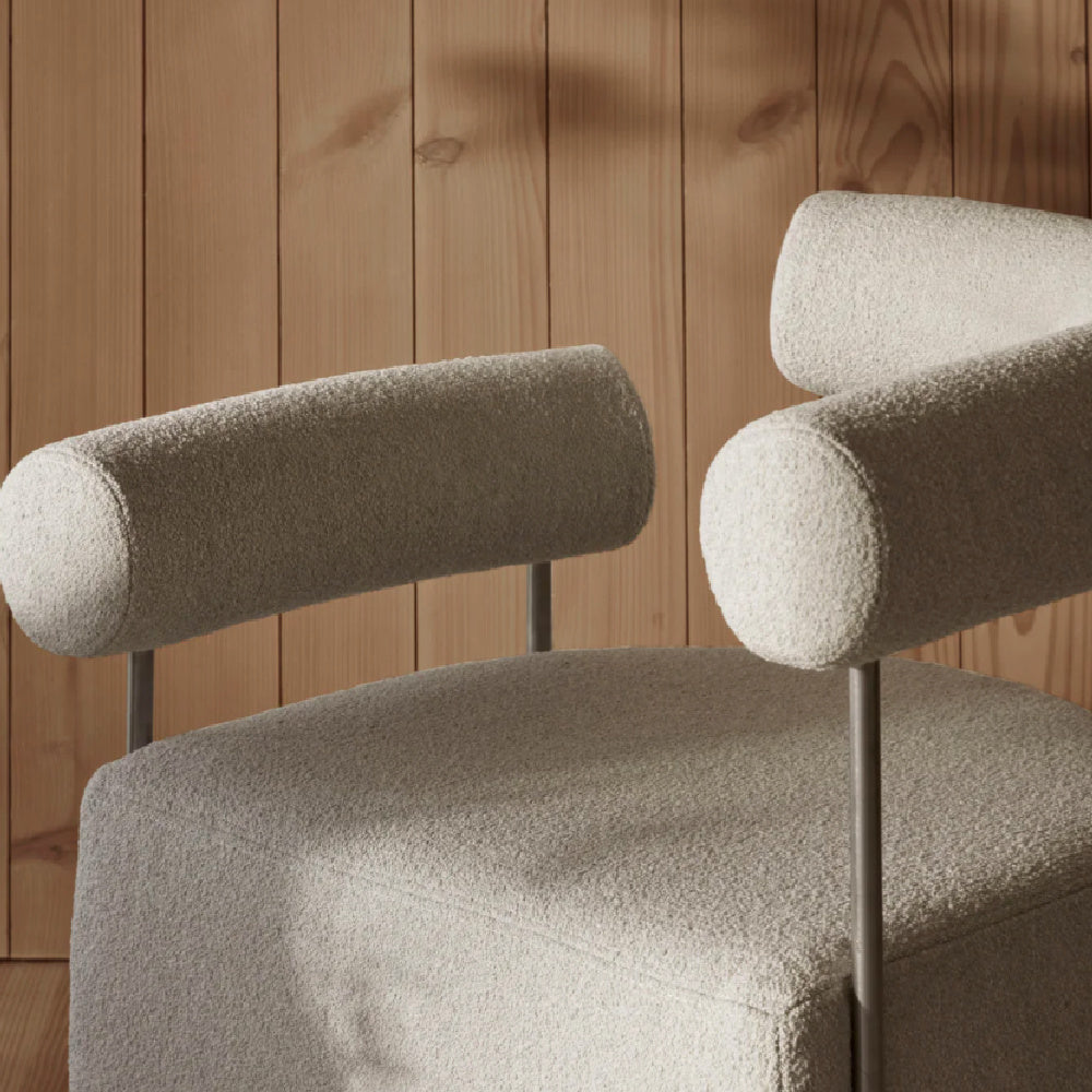 The Solitude Lounge Chair in beige offers a serene and elegant addition to any space. Embodying ethos of 'sculptural minimalism', this chair is inspired by the geometric principles of the Bauhaus movement. The unique design features offset armrests for versatile and comfortable seating options. Crafted with a luxurious, coarse-woven Italian Bouclé in a warm beige hue, the chair's fabric complements its stainless-steel frame, creating a harmonious contrast. More than just a seating option, the Solitude Chair in beige is a true statement piece, merging art and design to enhance both the aesthetics and comfort of your living space.