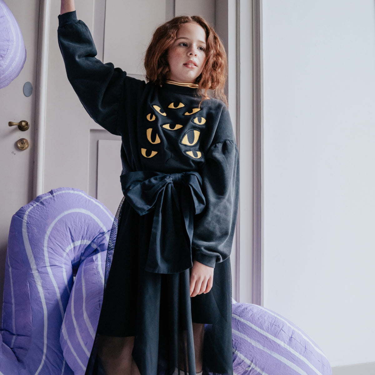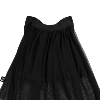 A super chic tulle skirt featuring a large bow in the front, short skirt underneath, and an elastic waistband. Pair with any tee or sweater and the look is so versatile and absolutely stunning!