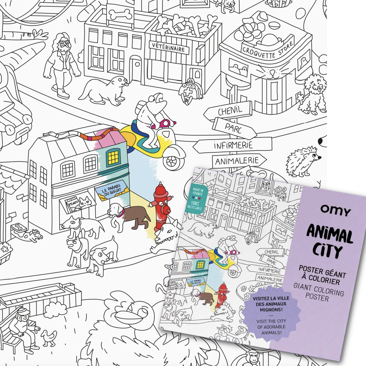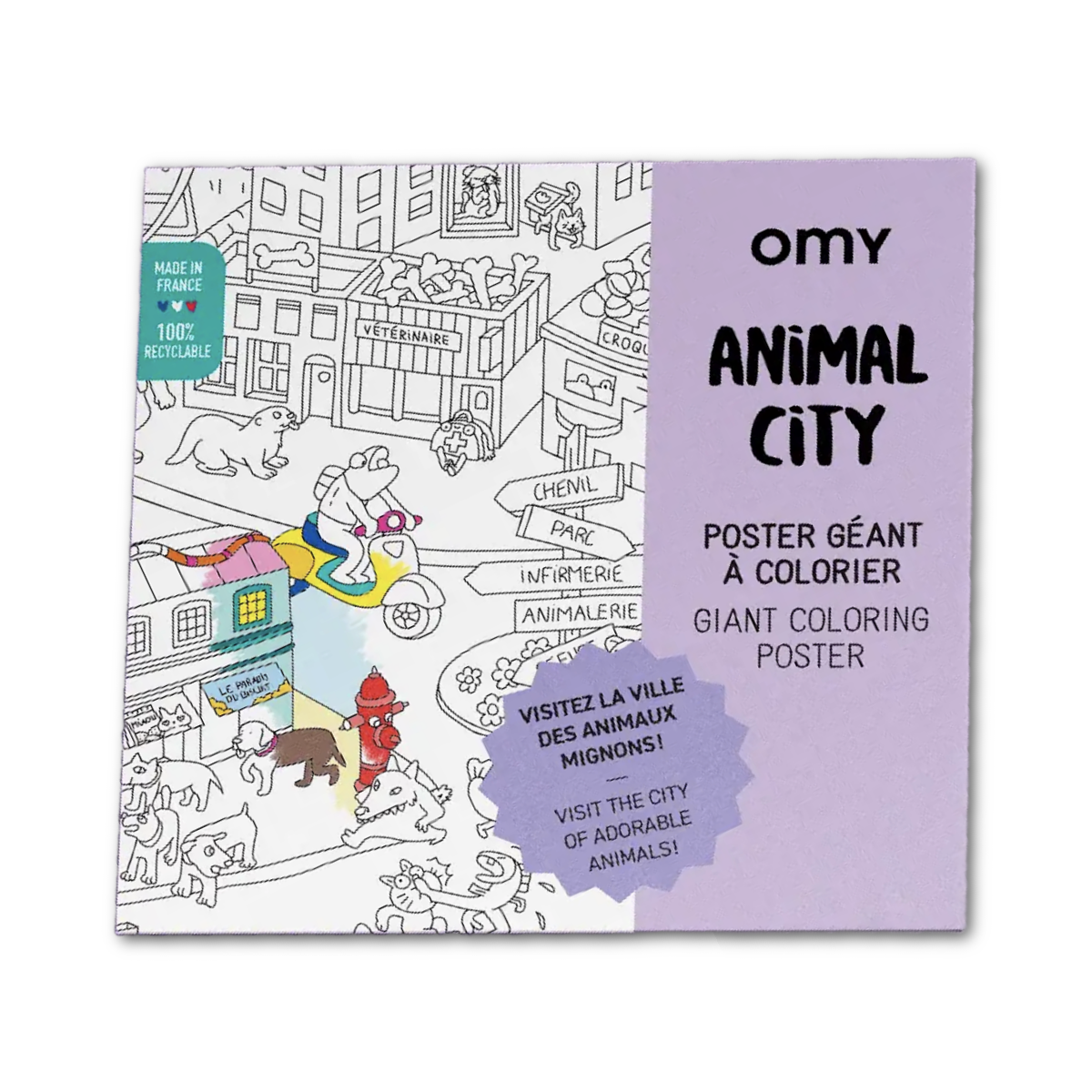 Big ears, small legs, soft fur...how could you resist these adorable animals? Let's discover the city lives of adorable and irresistible animals. This poster is a graphic experience to share with all generations. A creative poster to color alone or with company, unfold on floor, table or wall Framable.