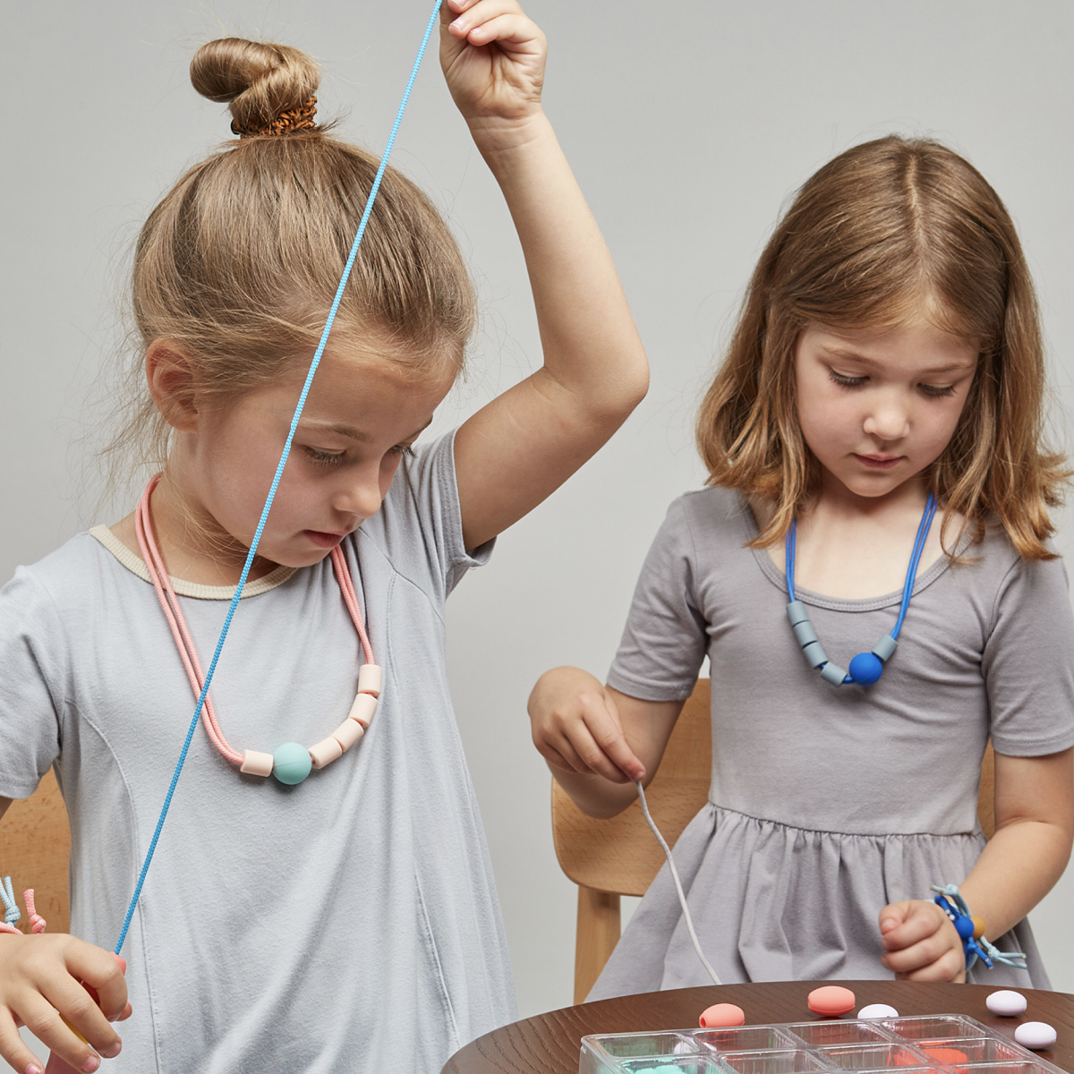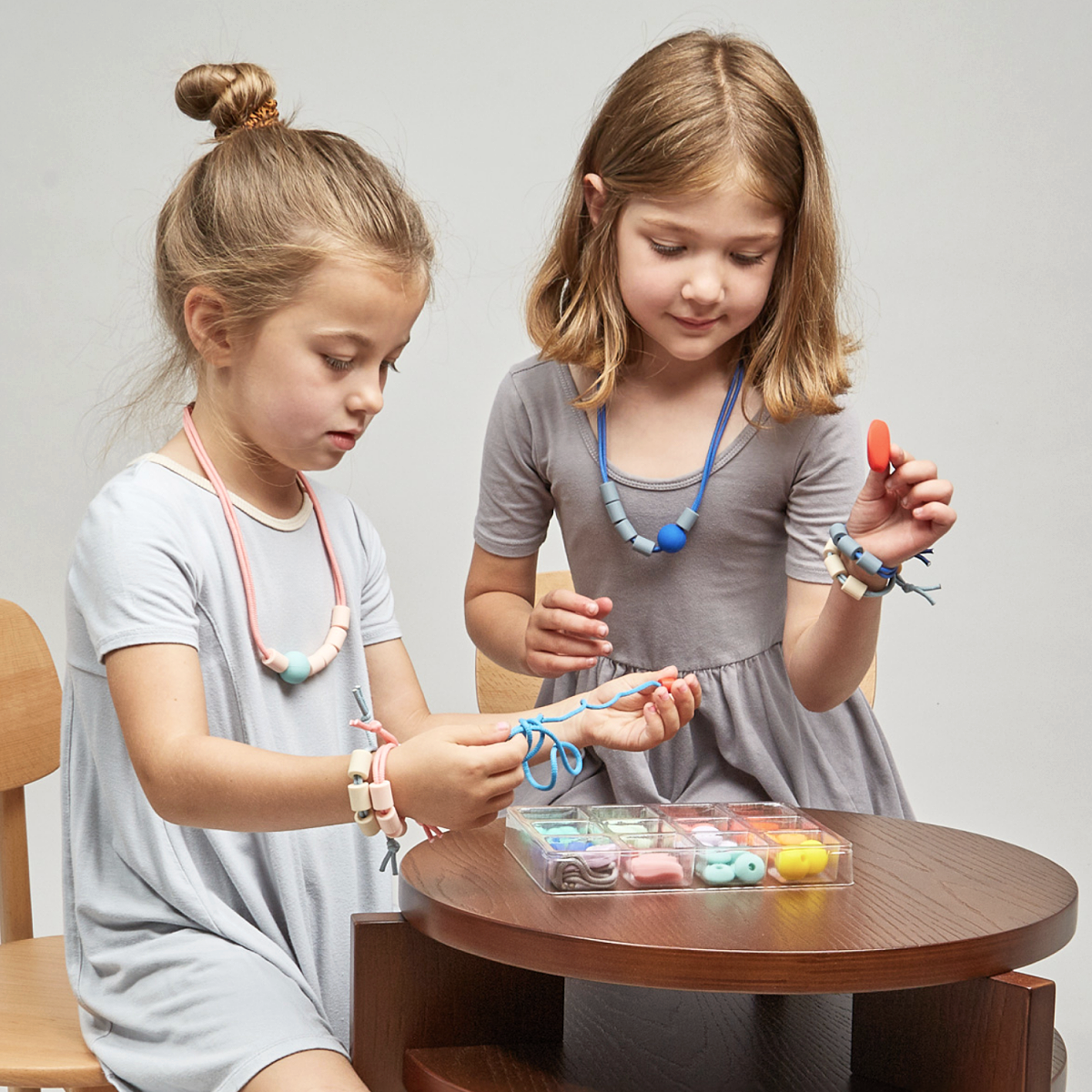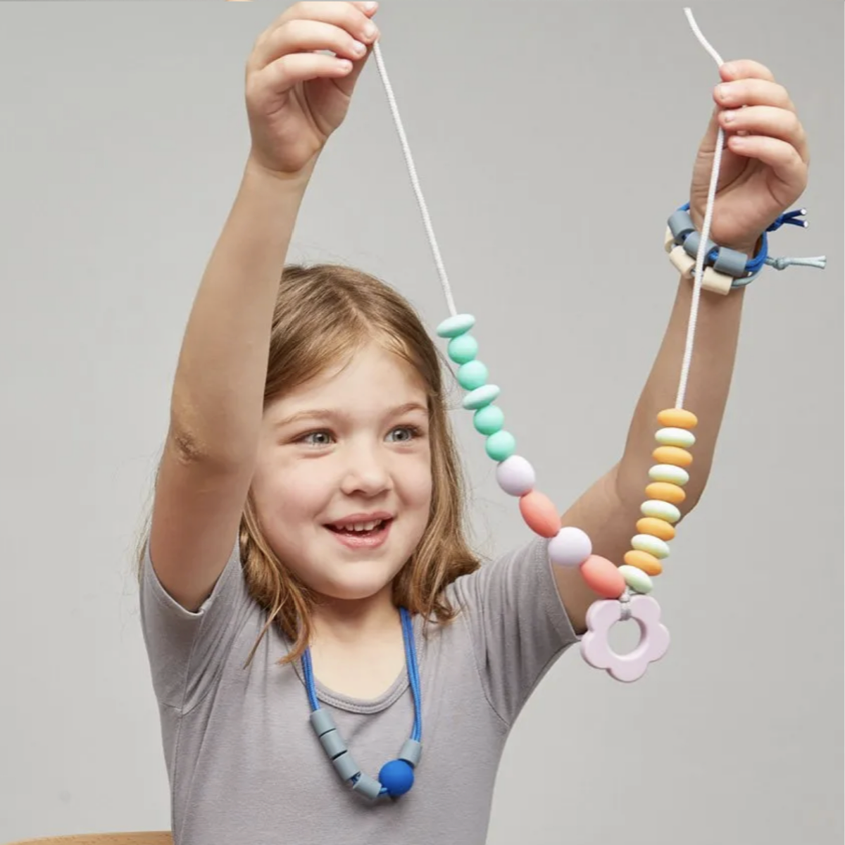 Every mini-maker’s dream come true! Our DIY Sensory Necklace Kits give kiddos a chance to express themselves with elevated, artful materials that last. Each kit contains materials for up to two Sensory Necklaces including a curated assortment of sensory friendly, 100% non-toxic silicone beads, pre-threaded clasps, chemical free rope, and detailed instructions.