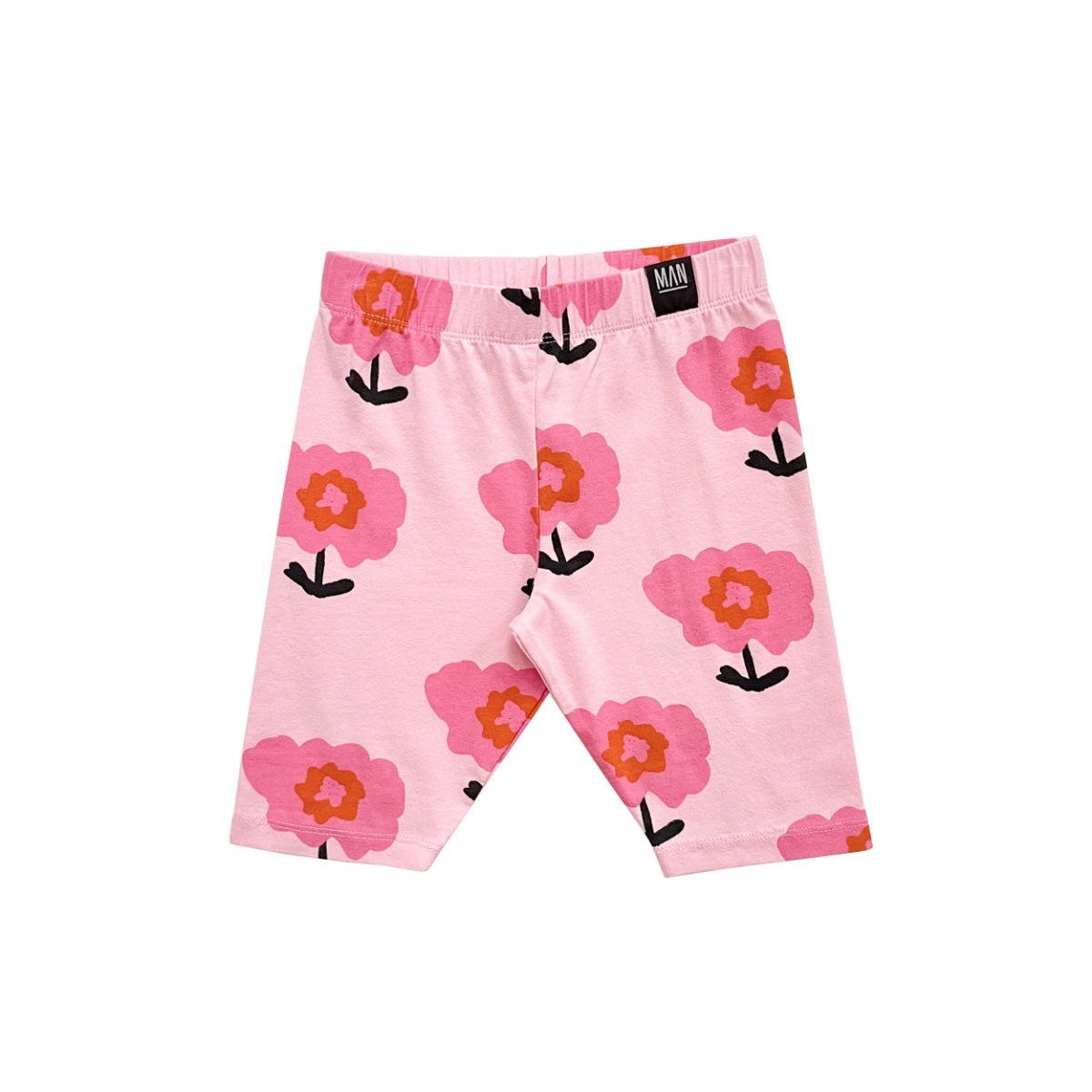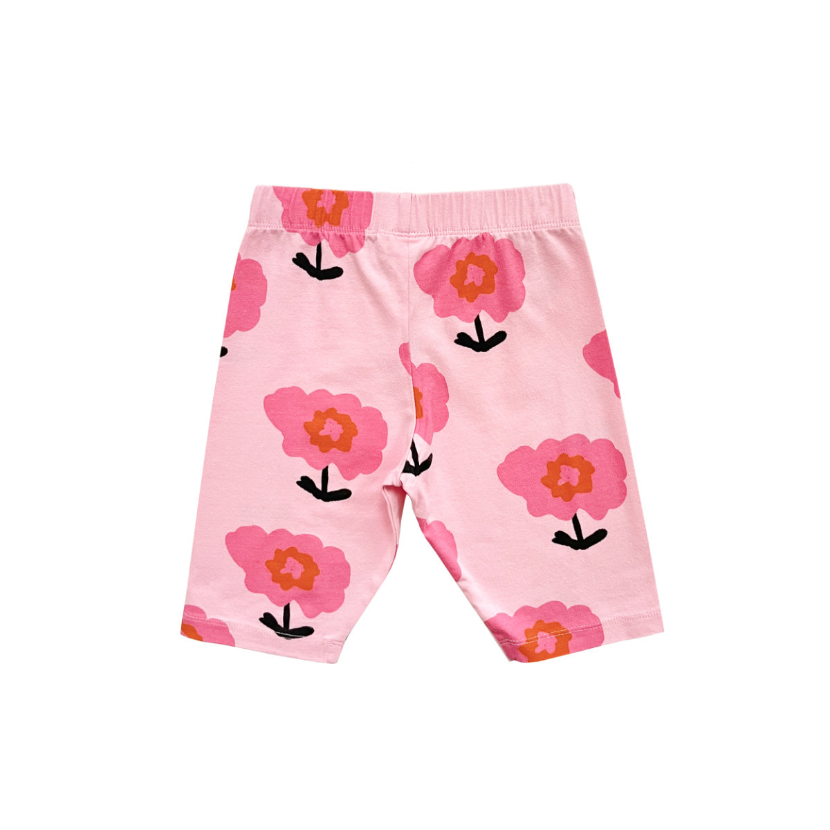 A soft and comfortable bike short featuring a pink all over flower print. Features a straight fit and elastic waistband.