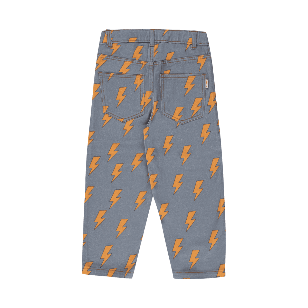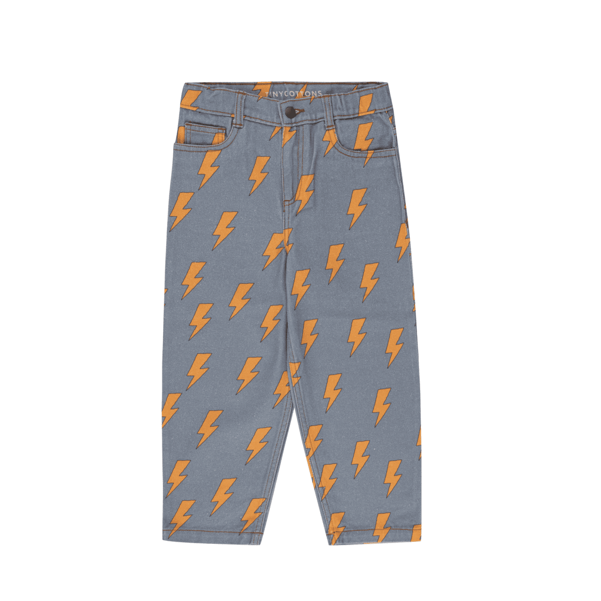 Lightning Baggy Jeans, in a cool denim azure. These cotton jeans fuse playful energy with everyday comfort. The striking lightning print adds a dash of boldness to your child's ensemble, perfect for both lively playdates and casual outings. Made for movement and designed to last, they're a staple for any young wardrobe.