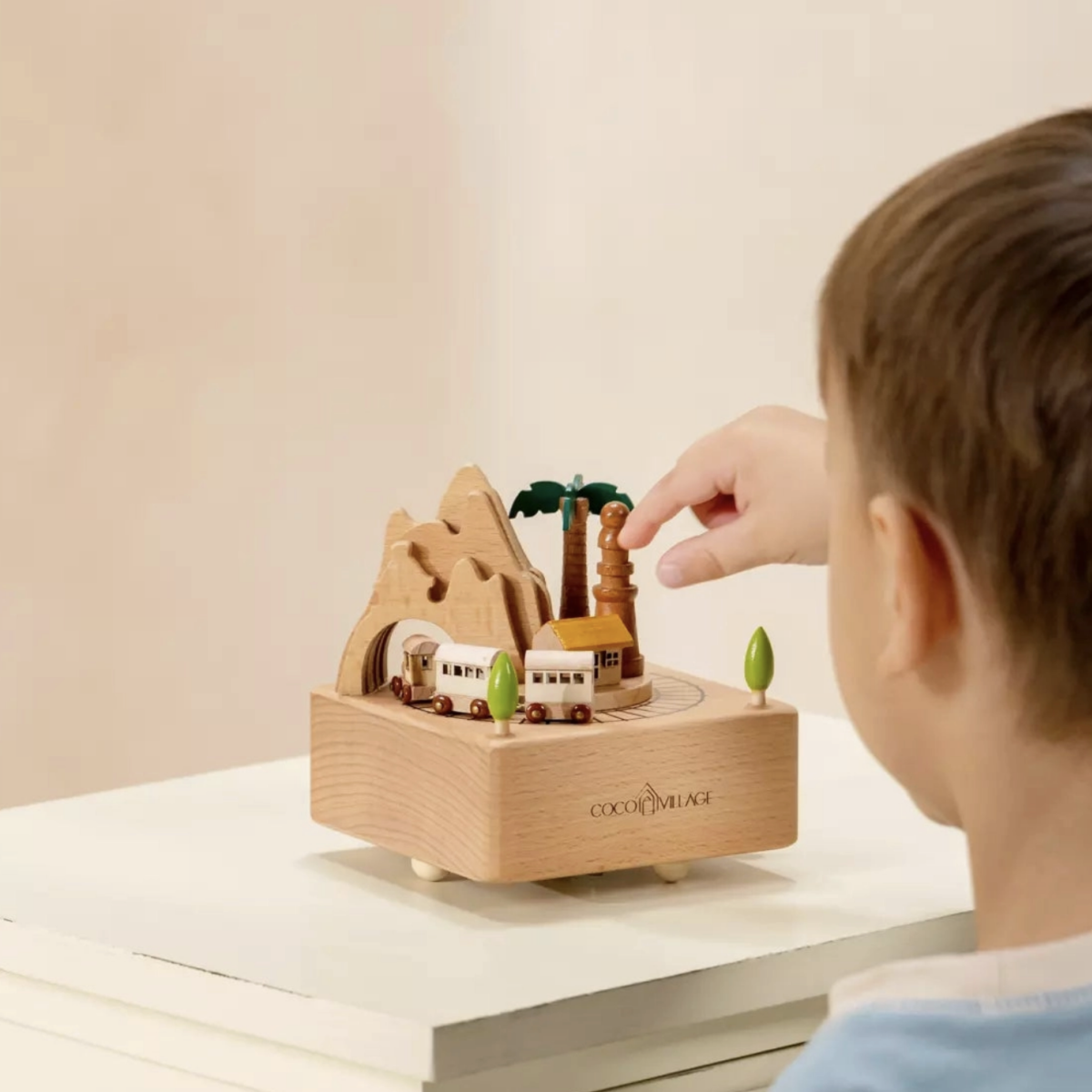 This beautiful Train Music Box is a special piece with its gentle and soothing music,  perfect to sing anyone to sleep. While it is not a toy, it sure is a great addition to create a unique decoration for the nursery. This object quickly becomes a precious souvenir to keep, collecting the tender moments of childhood over time.