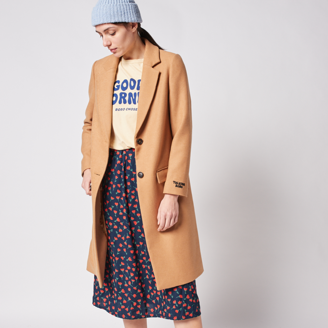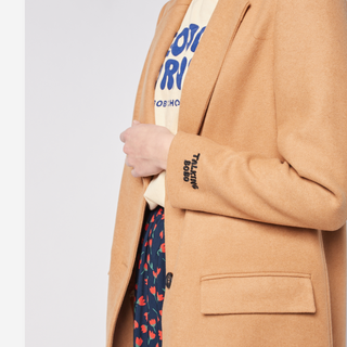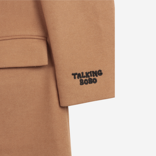 A beautiful oversized fit, lapel style merino wool coat featuring a 'Talking Bobo' embroidery, long sleeves in a stunning Apple Cinnamon brown coloring. Sure to be your staple piece and one to keep for years to come!