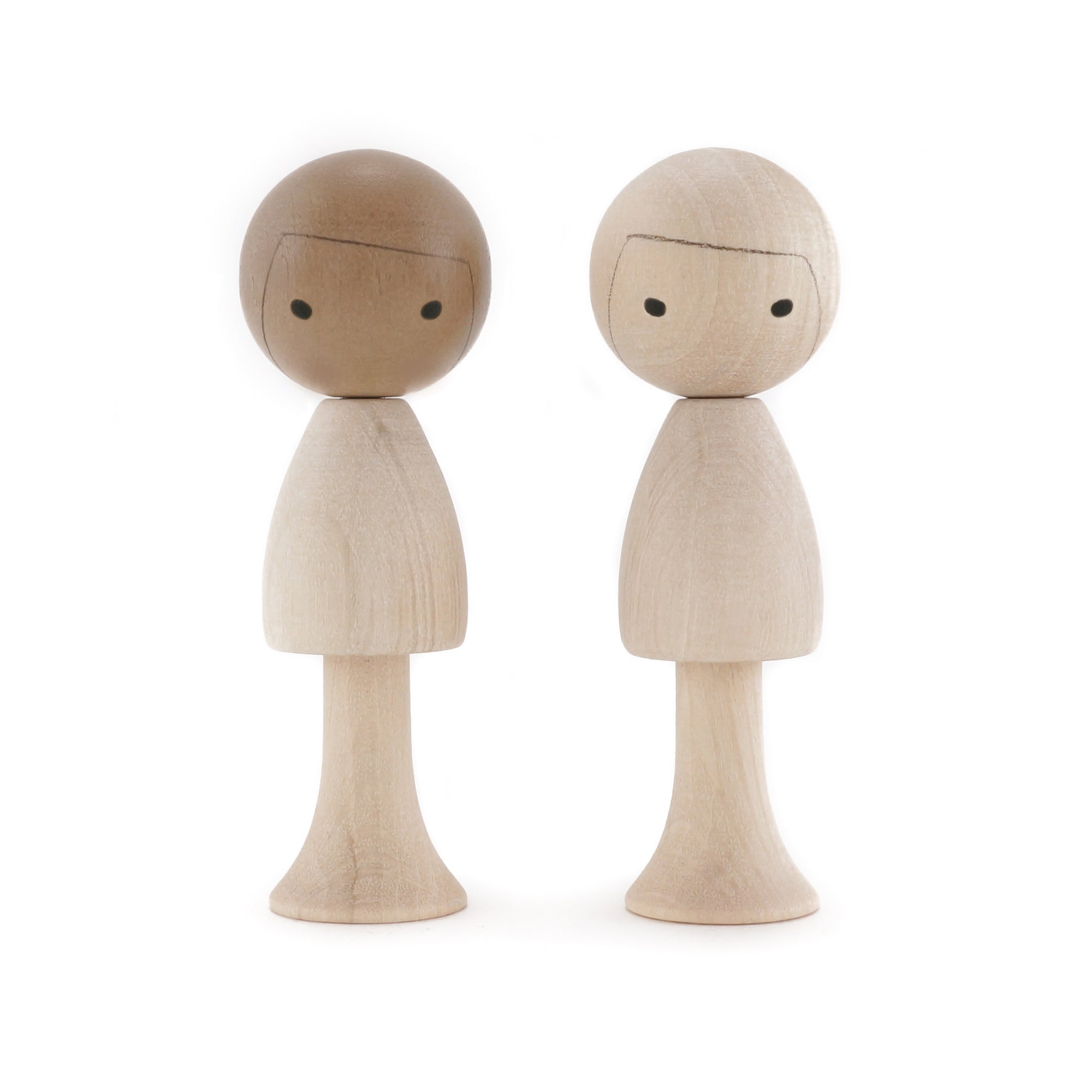 These all natural dolls are a beautiful addition to our handmade collection of wooden toys. Each doll consists of two elements that are held together with tiny magnets designed be mixed and matched. Paint and color them to your liking or leave to feature it's natural coloring.