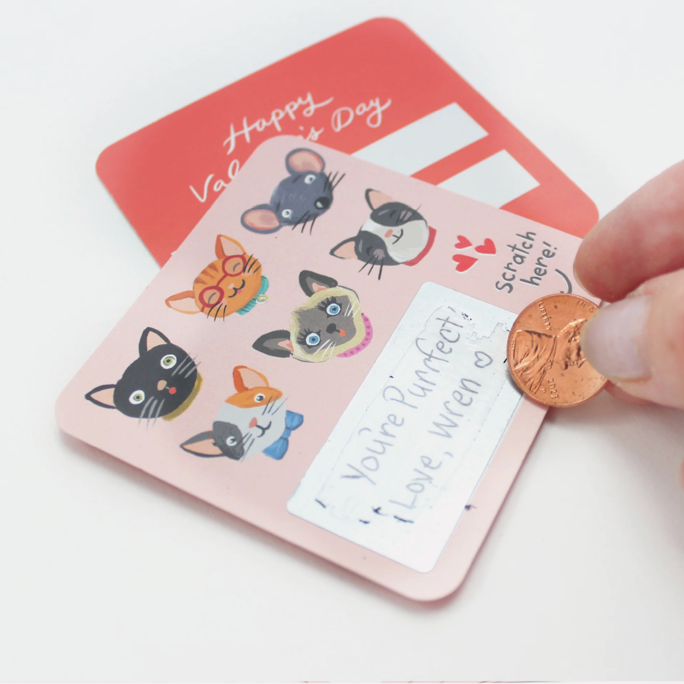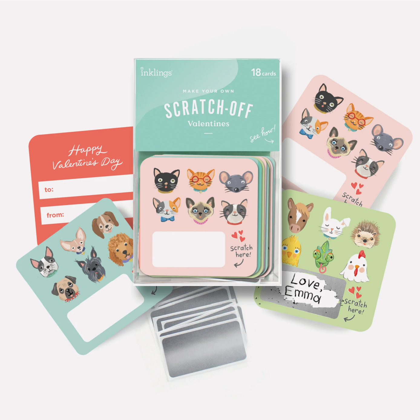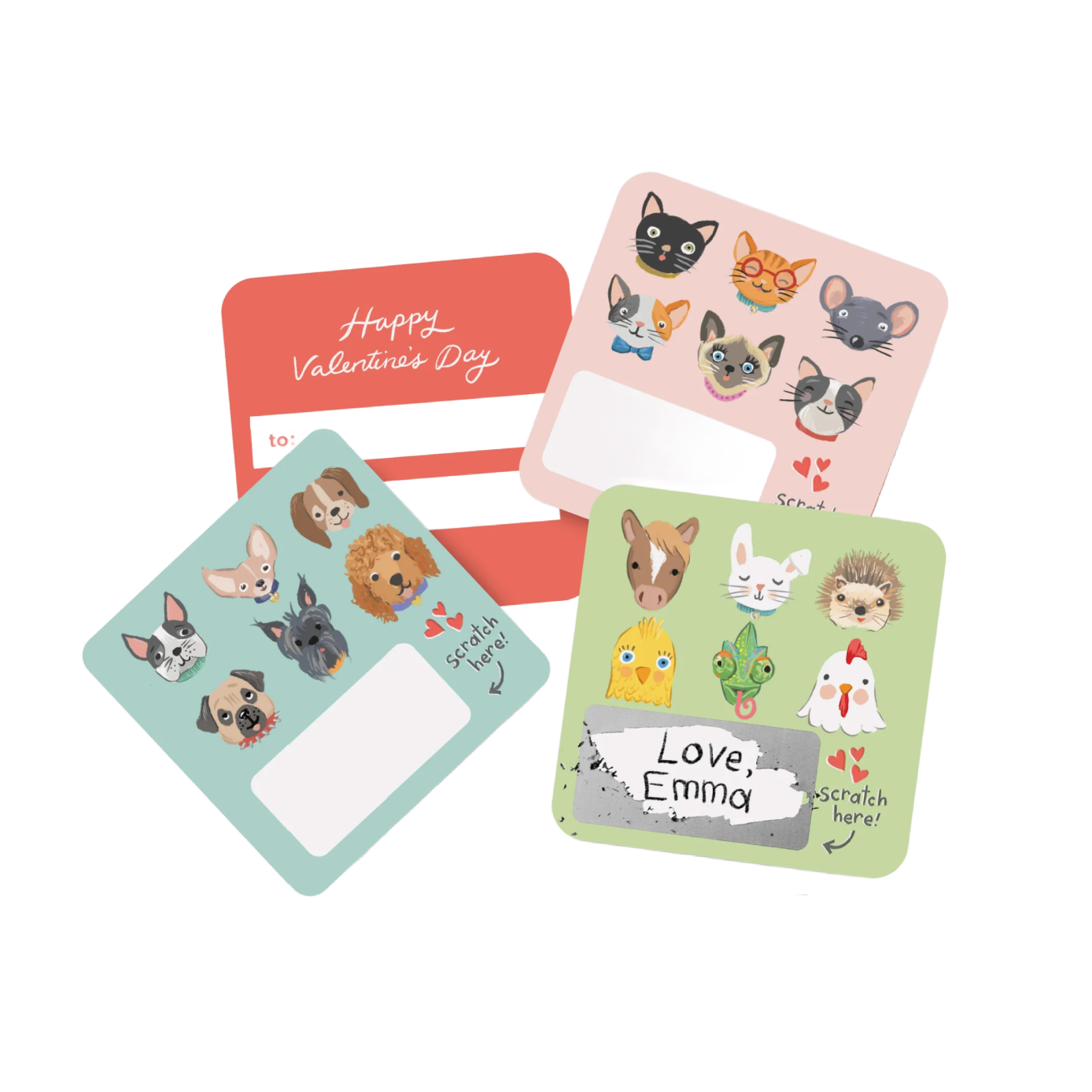 Make your own scratch-off valentines! This set includes 18 assorted monster cards with scratch-off stickers that are fun and easy to assemble! Write your message in the space provided and cover it with the scratch-off sticker. Scratching with a coin will reveal your hidden message!