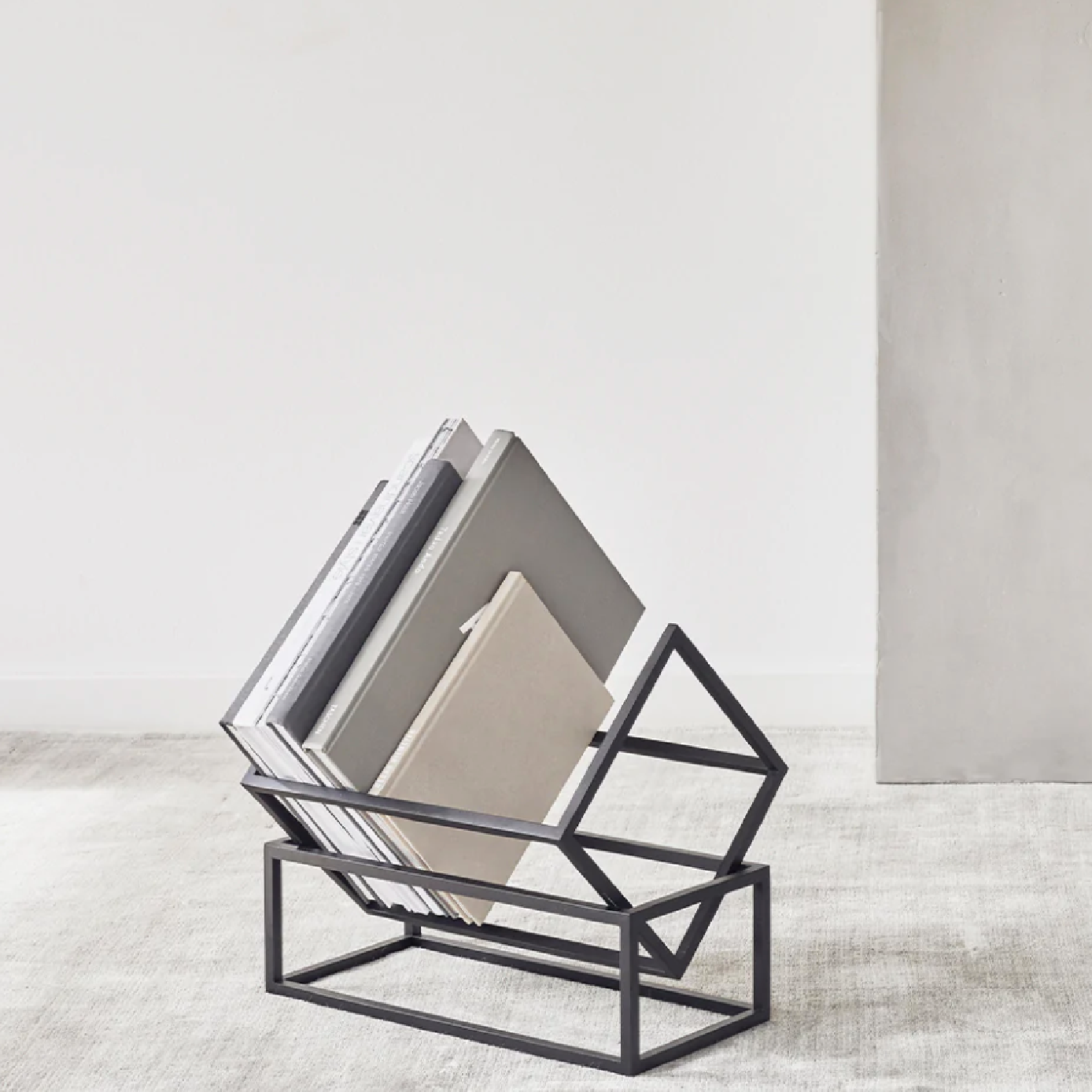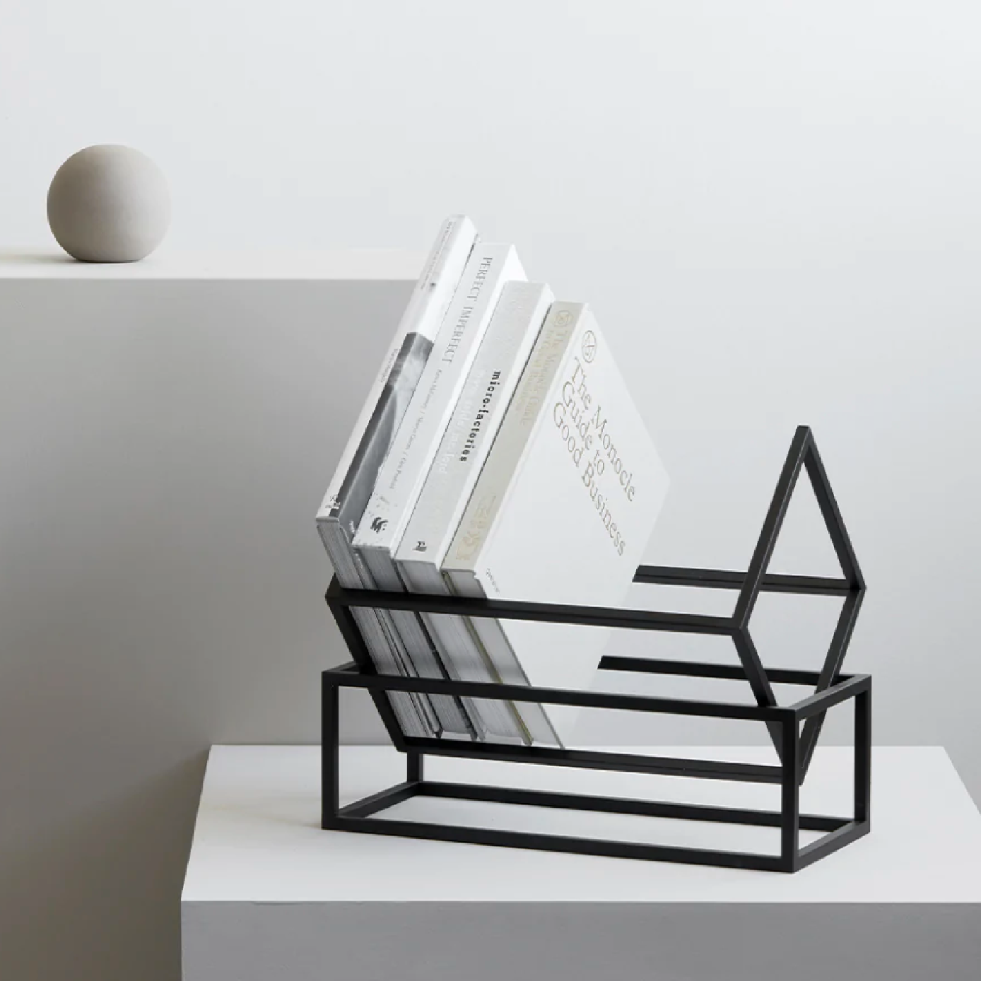 The Book Keeper is a simple and sculptural way to arrange and order your books. Use the Book Keeper in your living room, on your bedside table, in the kitchen or at your office desk. This book storage unit is a two unit piece beauty. The first piece is an open shelf (steel frame) that is placed above the base frame, which results in the obligatory oblique position that guarantees that your books are presented in a visually highly appealing position