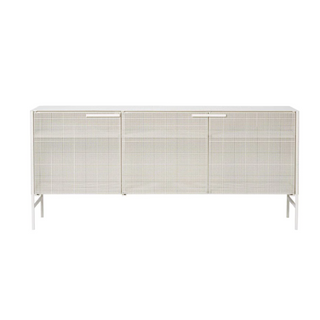 • Minimalistic with crystal clear lines and a pellucid appearance. The grid sideboard comes with two fixed perforated steel shelves. The three sideboard doors opens outwards and closes with a magnetic lock. The top plate of the Grid Sideboard is made of perforated beige steel, just like the top plate is on our Grid Cabinet. Large cupboards like the Grid Sideboard has been popular for generations due to their ability to store and display any favourite accessories.