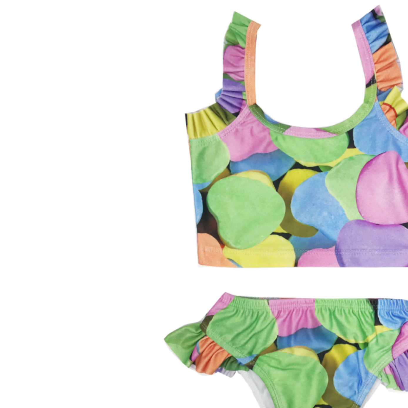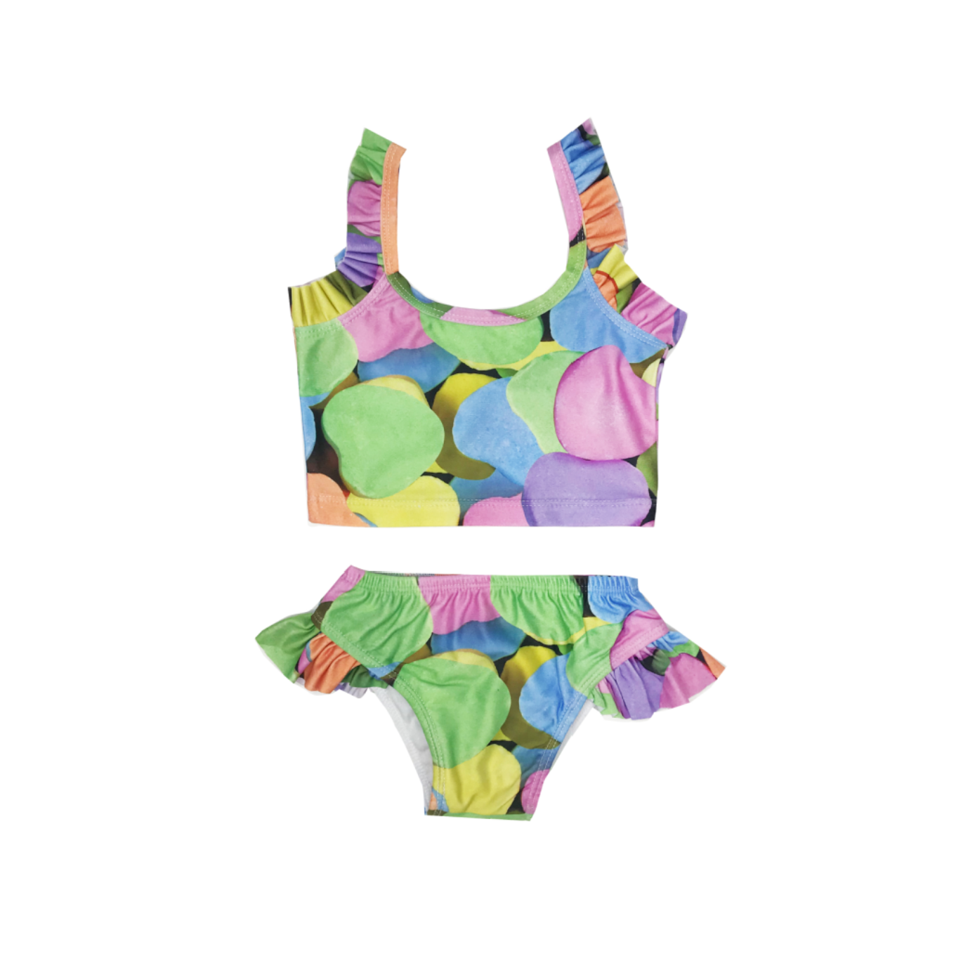 A rad all over digital print on an ultra chic bikini featuring a ruffle edge. Print placement may vary.
