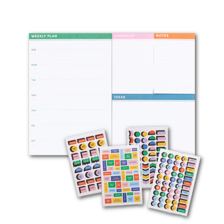 This ingenious desk pad includes four ways to keep your thoughts in order. This pad set consists of four separate stacks of tear-away sheets for your weekly plan, checklist, ideas, and notes.