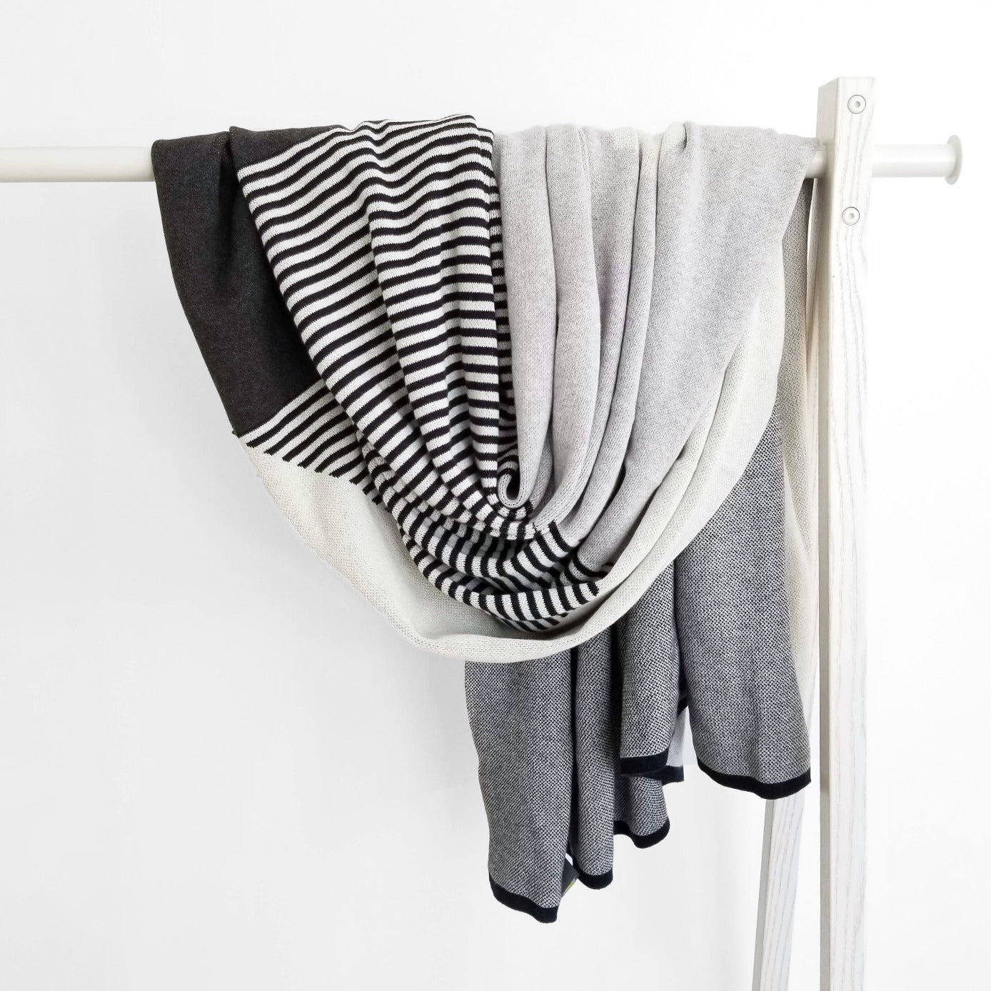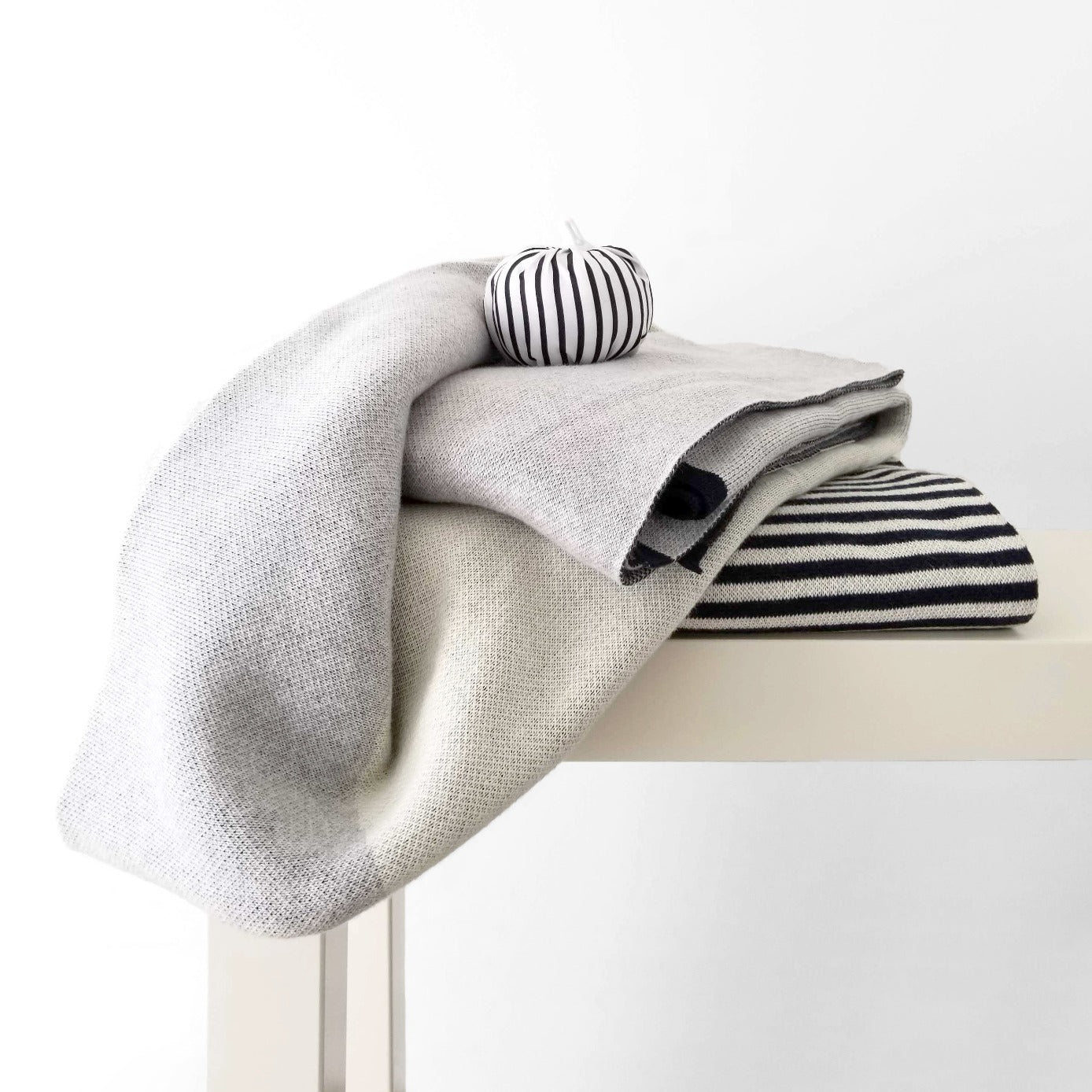 A beautiful and modern cotton throw inspired by the Swedish countryside. Incredibly soft and stunning as a decorative and functional piece in your home. With each blanket purchase, the designer donates an emergency blanket for a refugee in need.