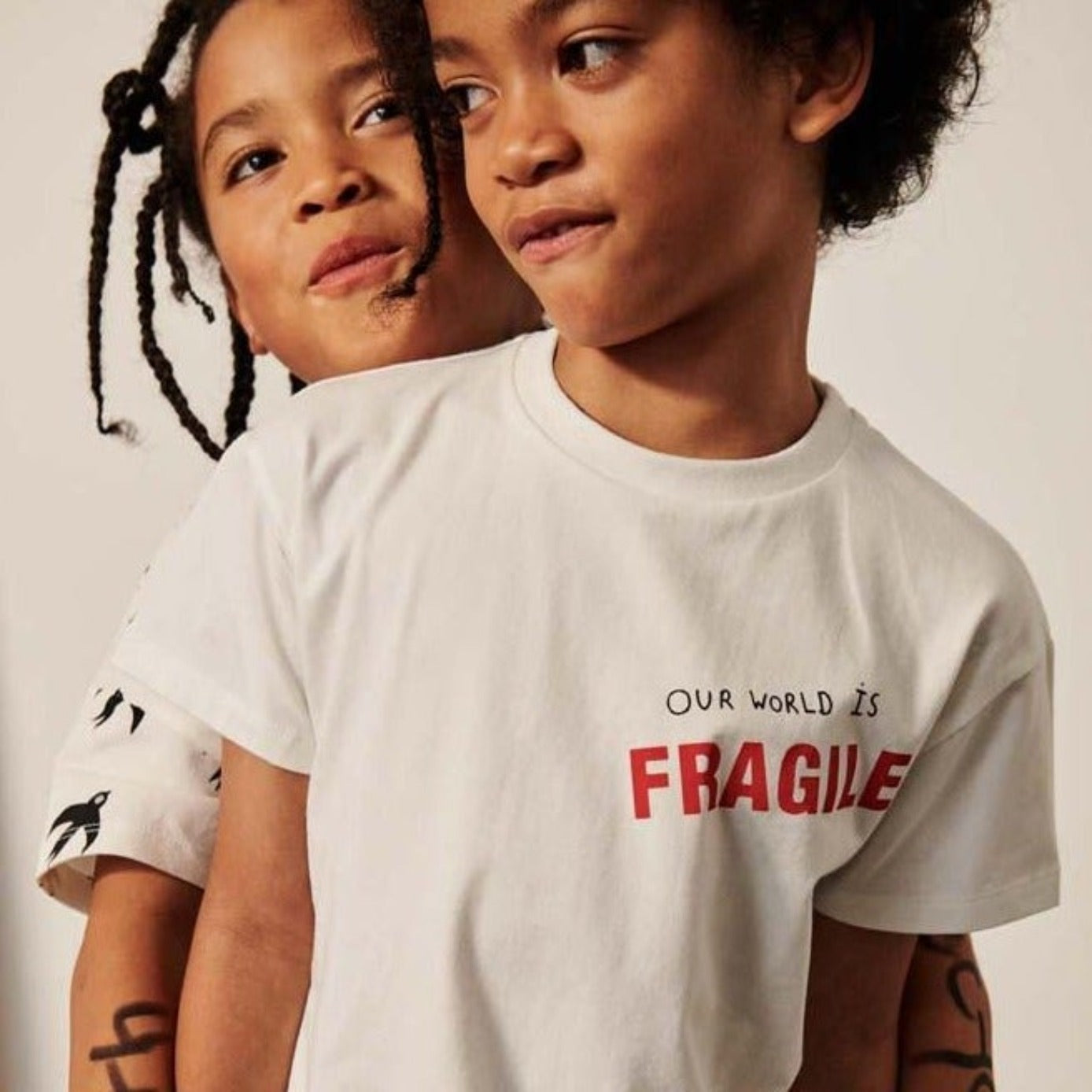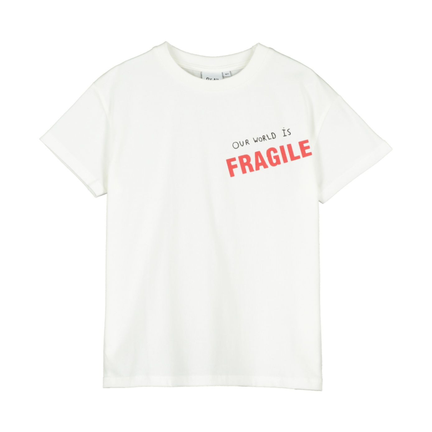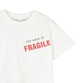 An encouraging and thoughtful short sleeve featuring the words "our world is fragile' on an ultra soft shirt.