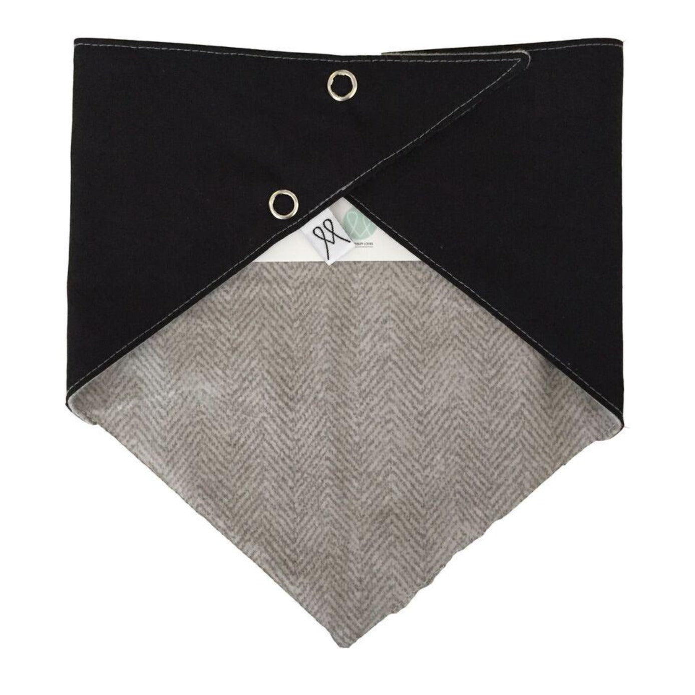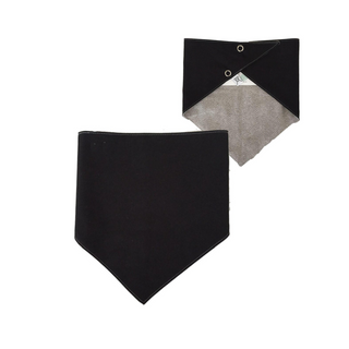 This reversible bib is one size fits most and features a two snap closure featuring a soft herringbone finish on the opposite side.