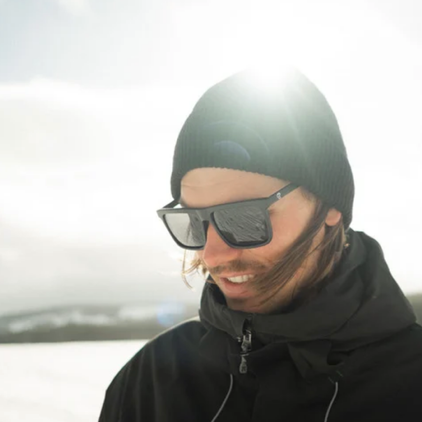 Comes with a black lens and an oversized, matte black frame made from 100% recycled plastic.